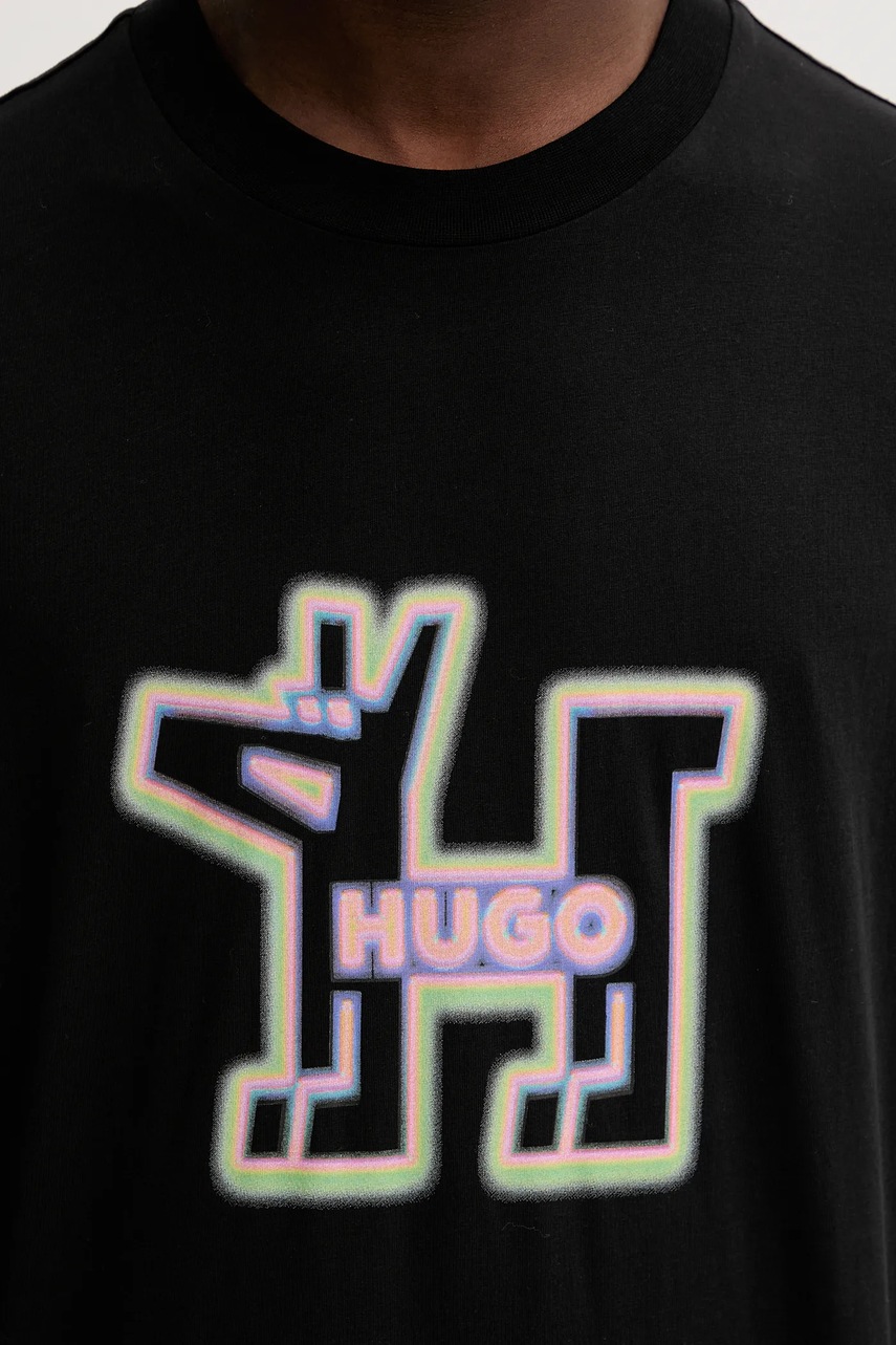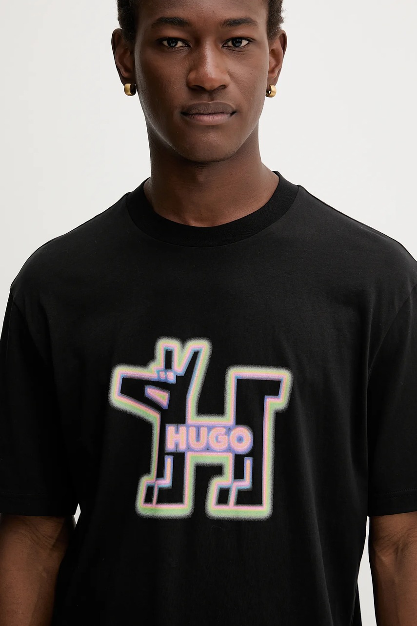 Hugo Blue t-shirt bawełniany męski kolor czarny z nadrukiem 50549162