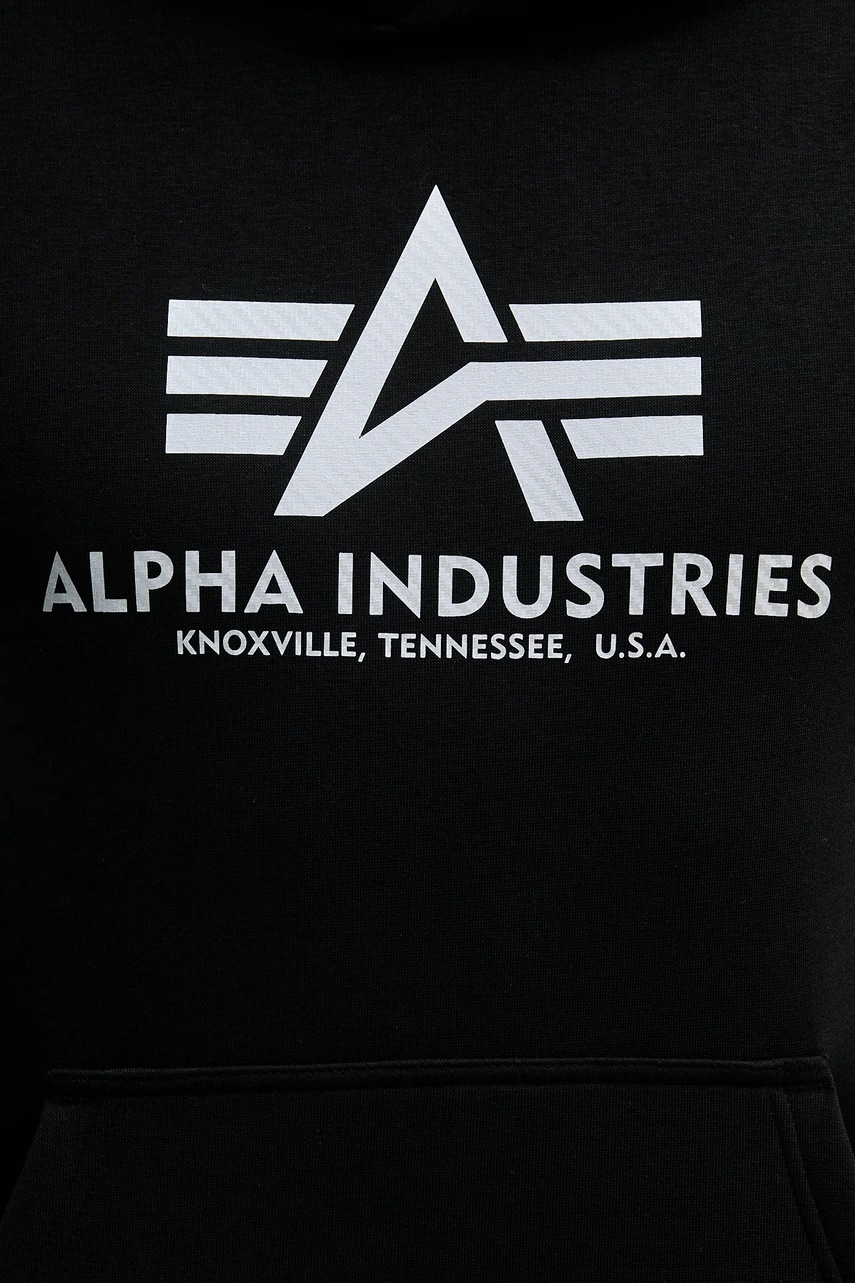 Alpha Industries bluza męska kolor czarny z kapturem z nadrukiem 146343.423