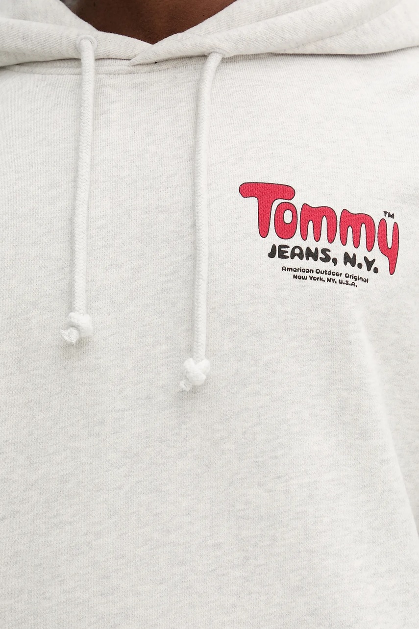 Tommy Jeans bluza bawełniana męska kolor szary z kapturem z nadrukiem DM0DM22086