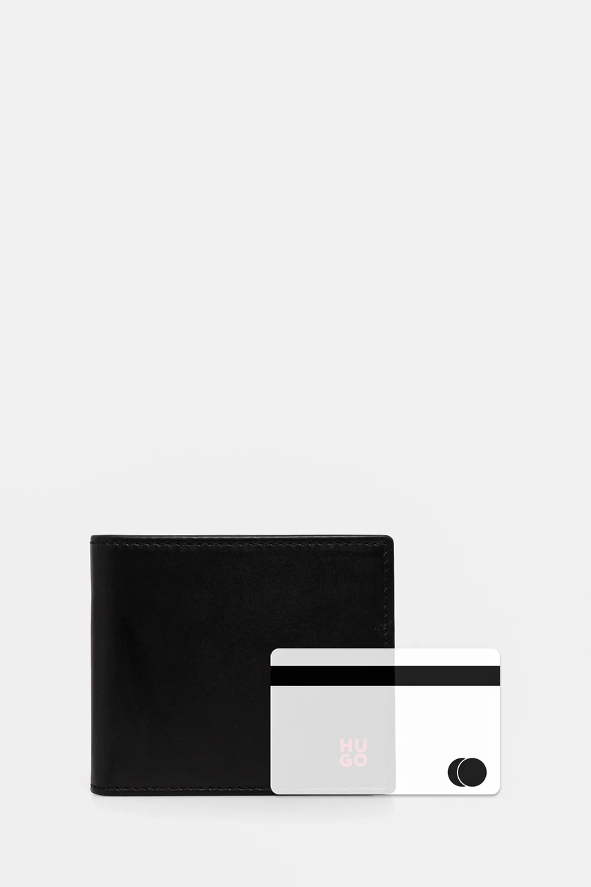 HUGO portfel skórzany męski kolor czarny 50546136
