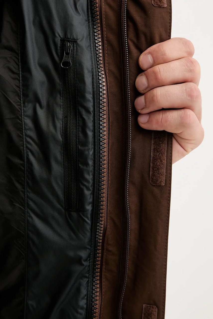 - Zapięcie na całej długości na suwak wyposażony w przypinaną na rzepy klapkę przeciwsztormową.