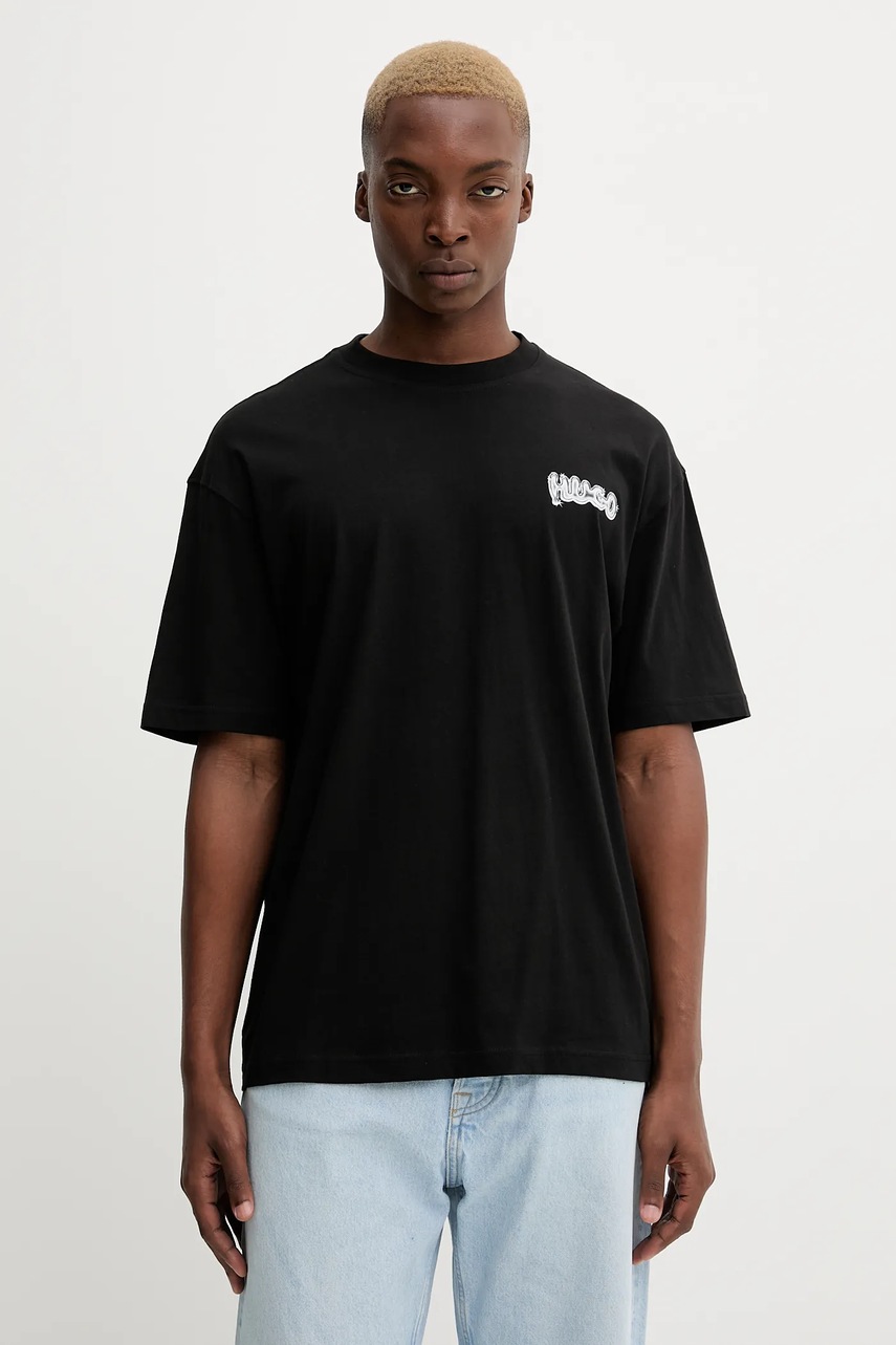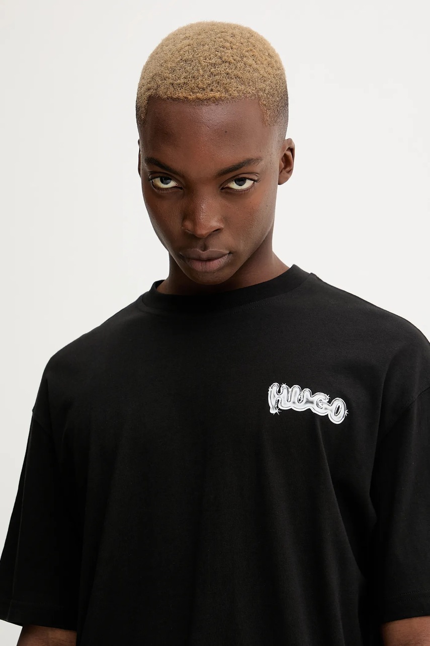 Hugo Blue t-shirt bawełniany męski kolor czarny z nadrukiem 50549769