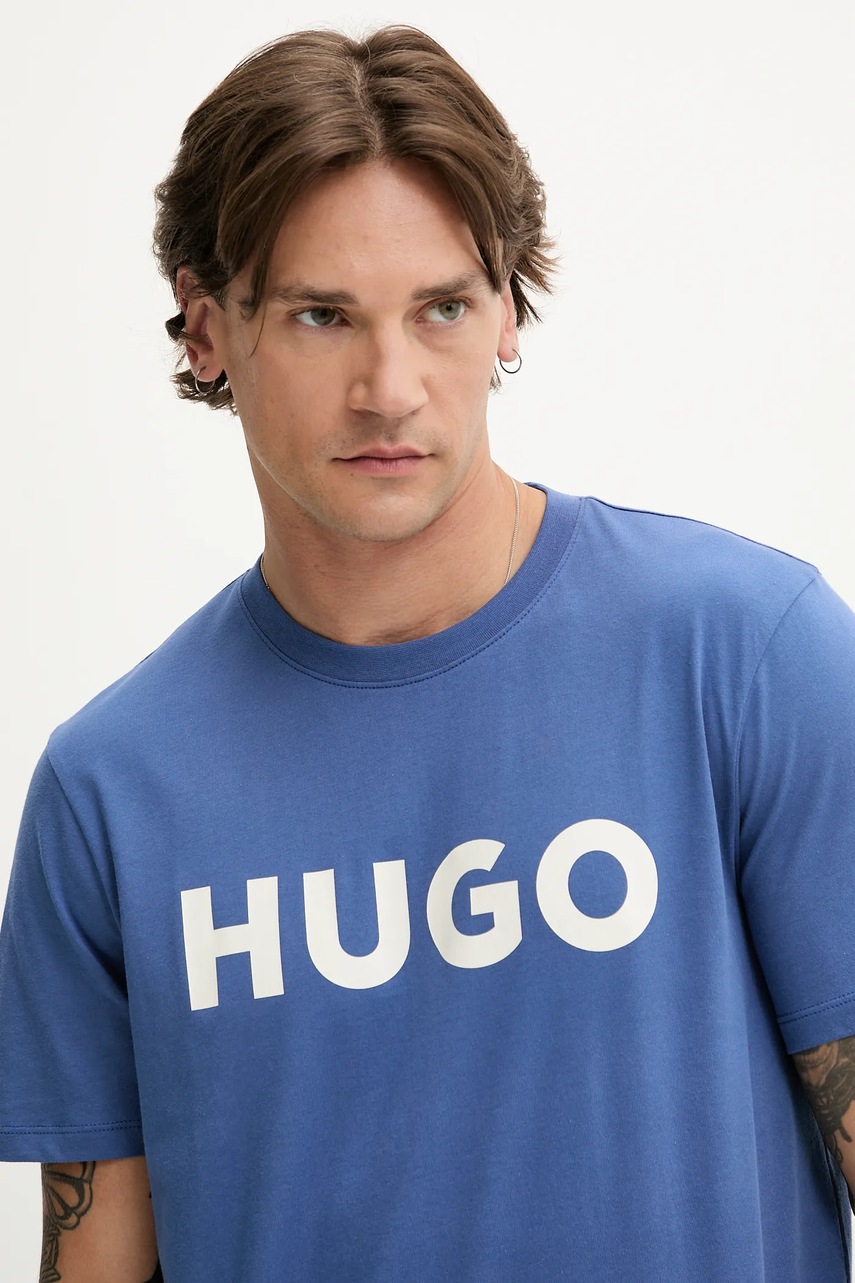 HUGO t-shirt bawełniany męski kolor niebieski z nadrukiem 50467556