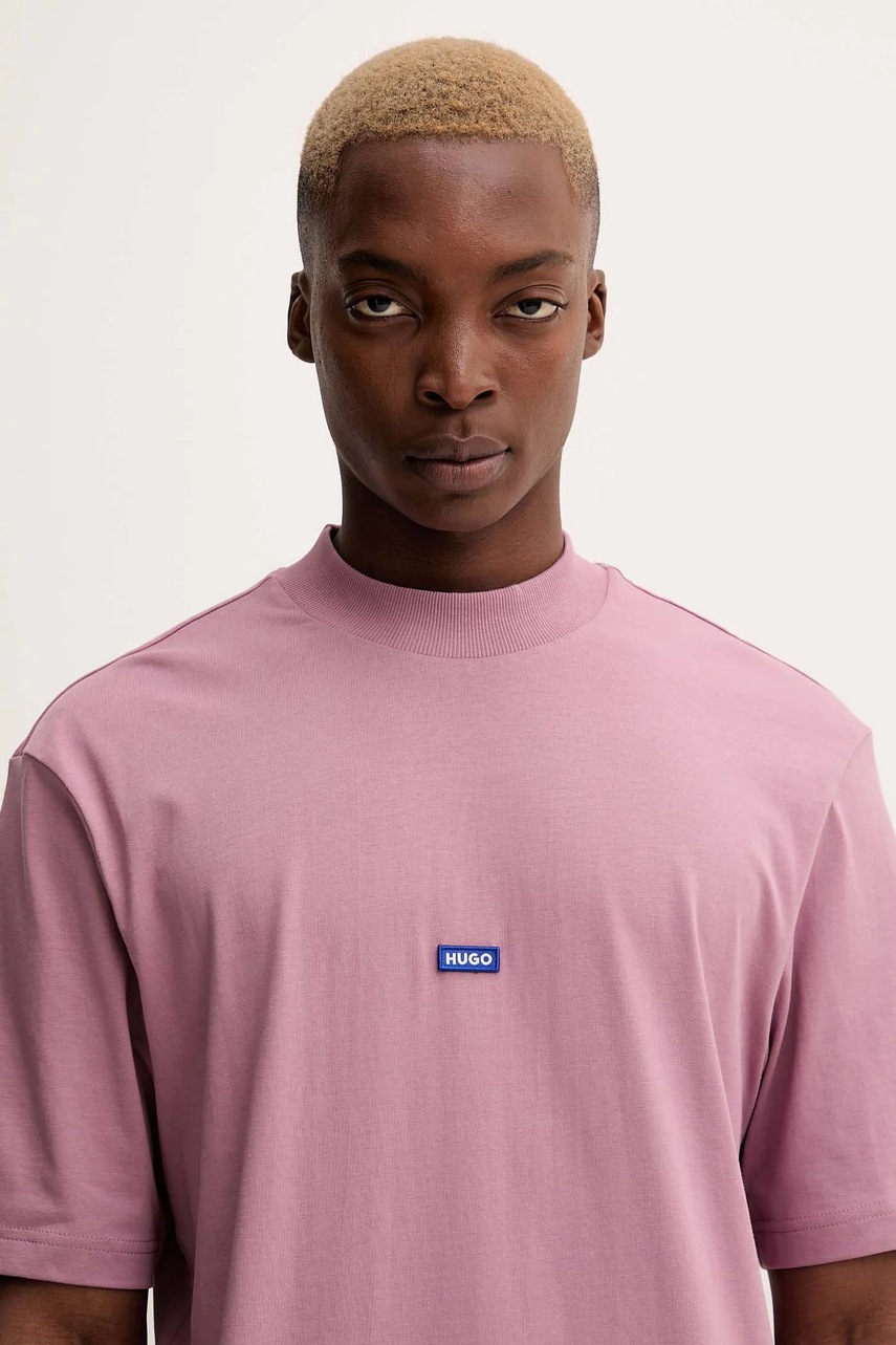 Hugo Blue t-shirt bawełniany męski kolor różowy gładki 50509991