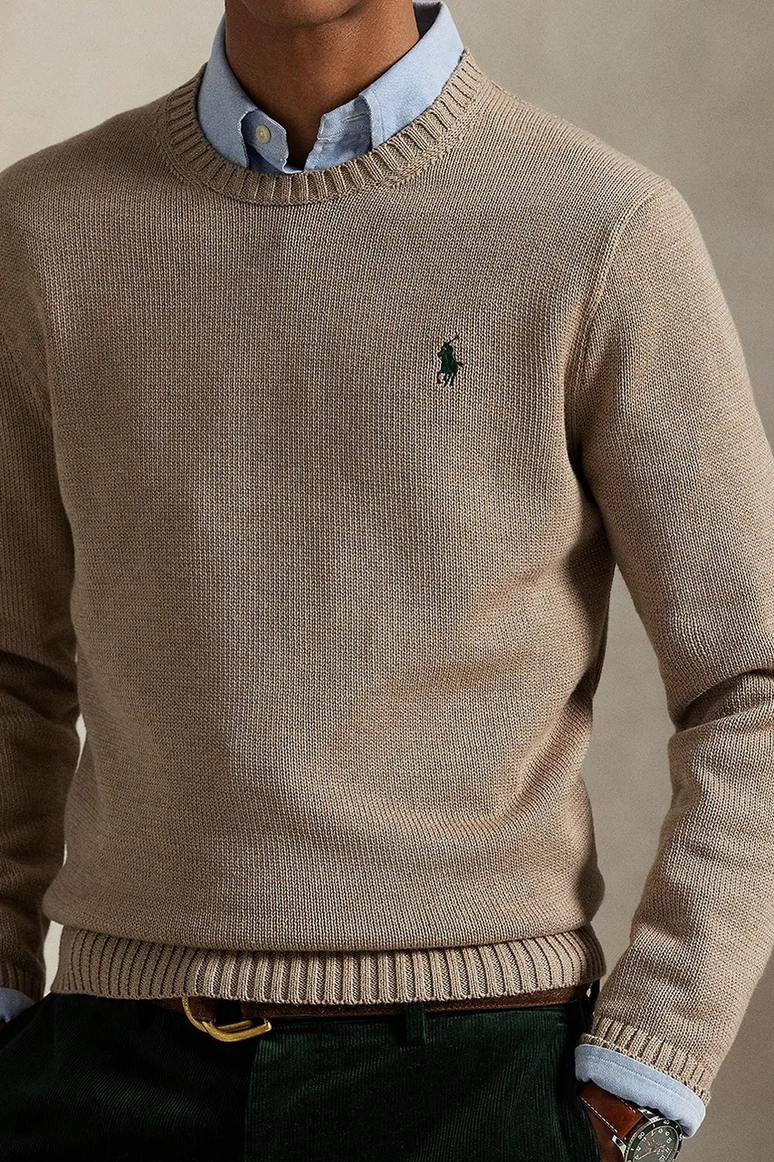 Polo Ralph Lauren sweter bawełniany kolor brązowy lekki 710810846