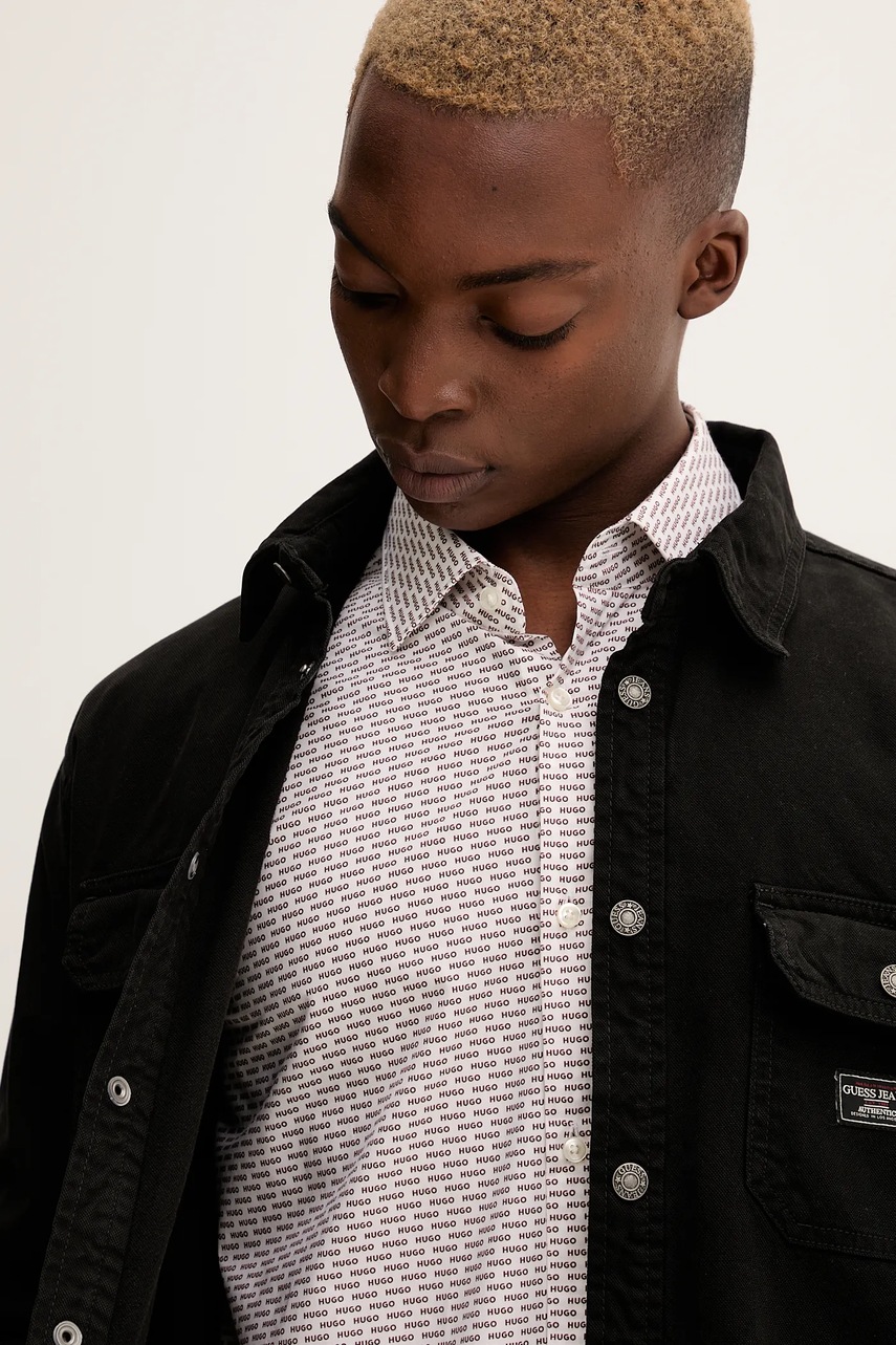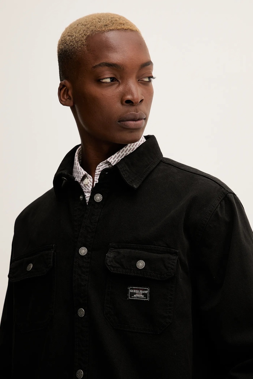 Guess Jeans koszula jeansowa męska kolor czarny regular z kołnierzykiem klasycznym M5YH66 WHFR1
