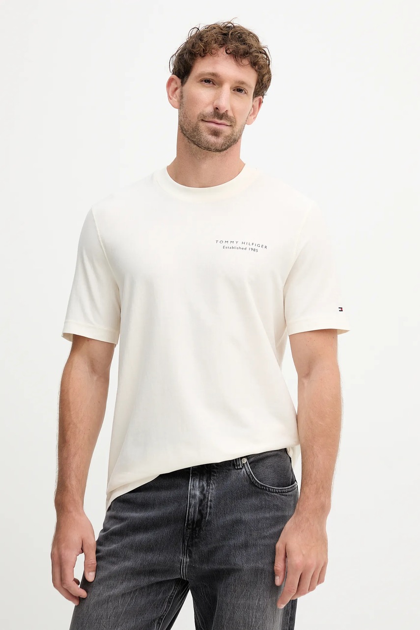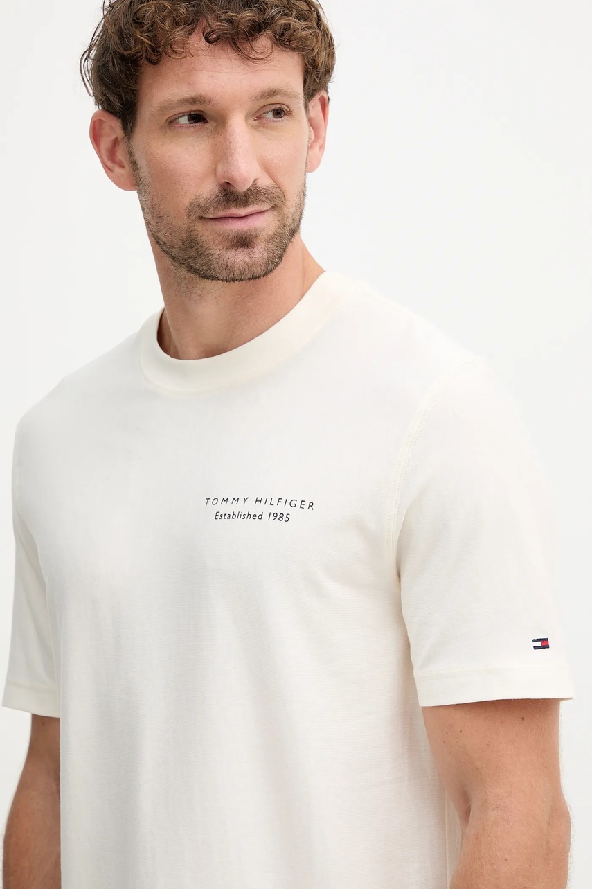 Tommy Hilfiger t-shirt bawełniany męski kolor beżowy z nadrukiem MW0MW40010