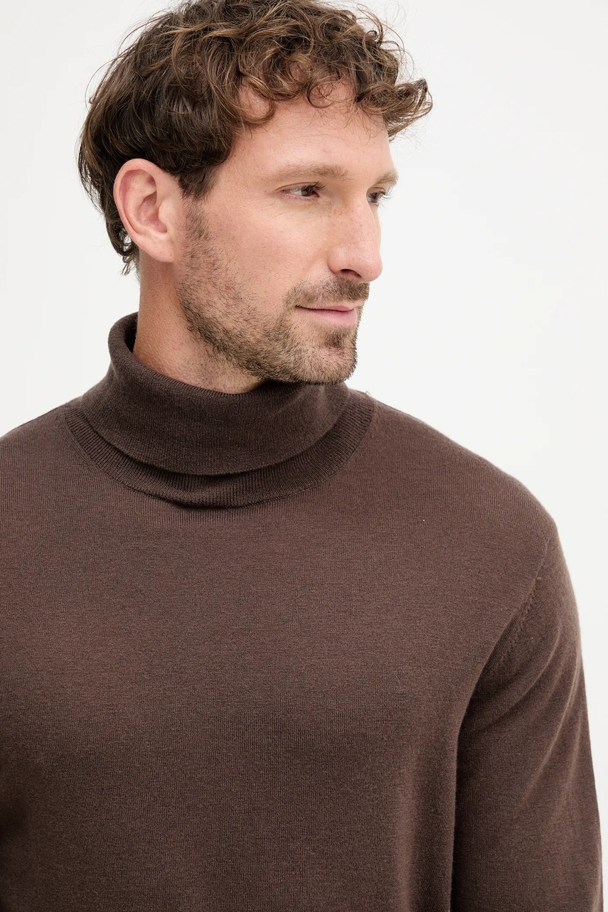 Mos Mosh sweter z dodatkiem wełny ADAM męski kolor brązowy lekki z golferm 503343