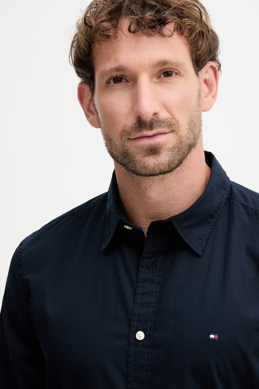 Tommy Hilfiger koszula bawełniana męska kolor granatowy slim z kołnierzykiem klasycznym MW0MW40460