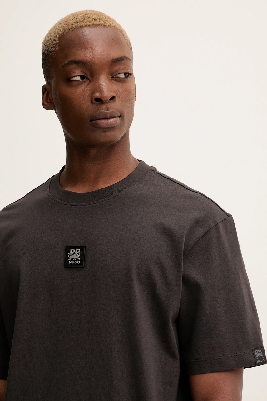 HUGO t-shirt bawełniany męski kolor brązowy z aplikacją 50549304