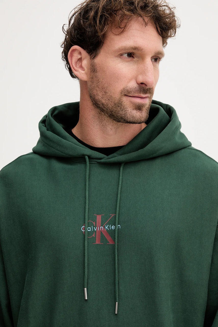 Calvin Klein Jeans bluza męska kolor zielony z kapturem z nadrukiem LV04RC281G