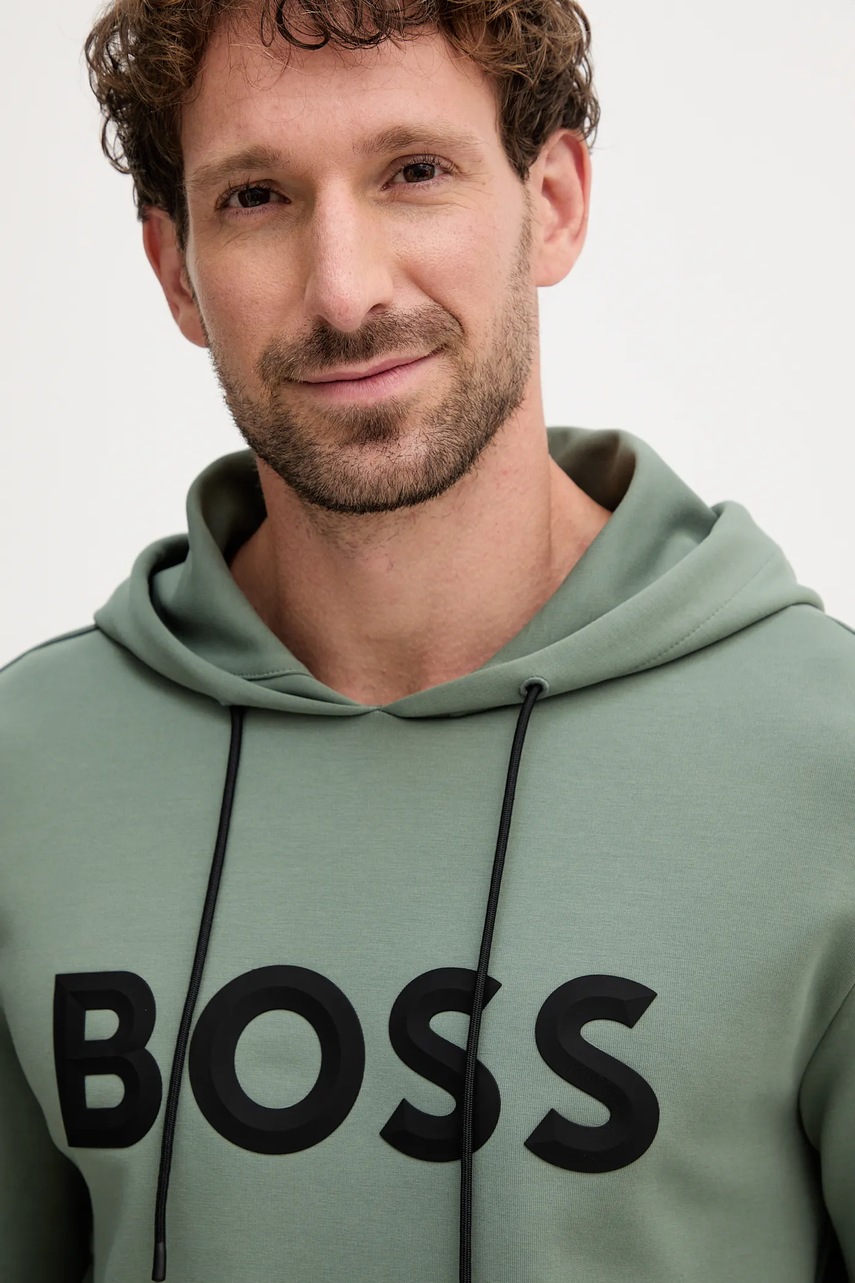 BOSS Green bluza męska kolor zielony z kapturem z nadrukiem 50551457
