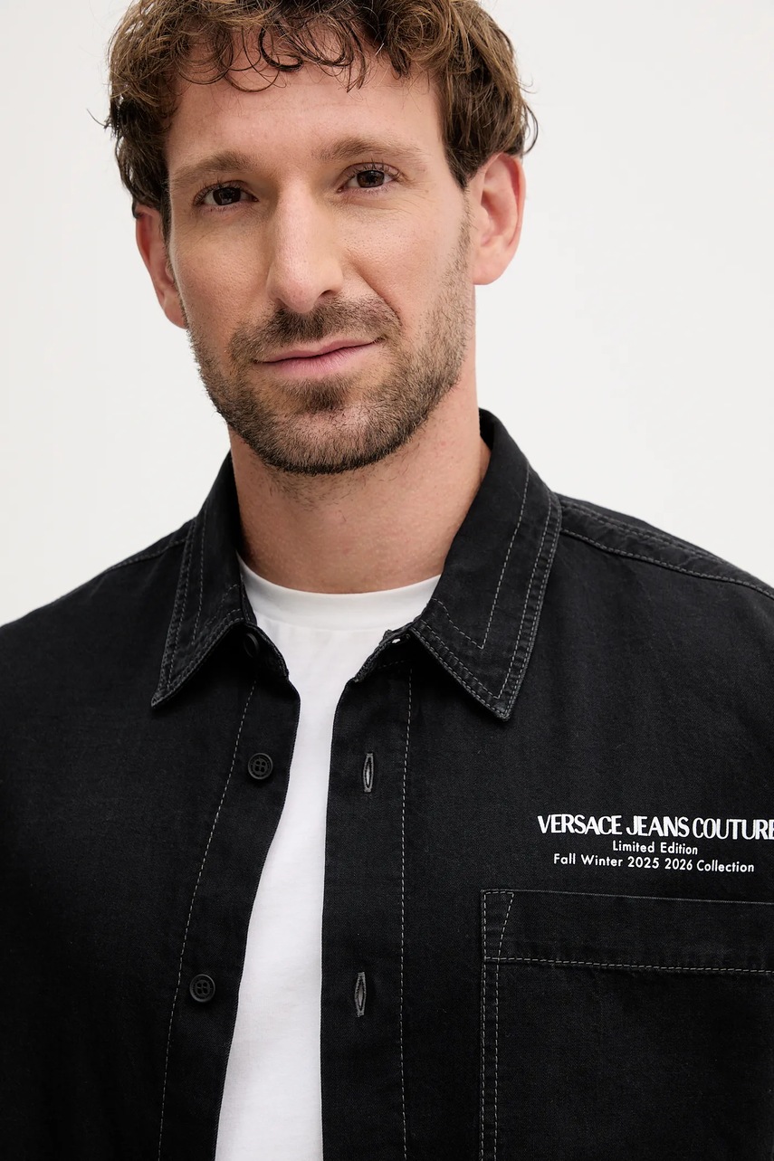 Versace Jeans Couture koszula bawełniana męska kolor czarny regular z kołnierzykiem klasycznym 79GAL251 DW118SW0