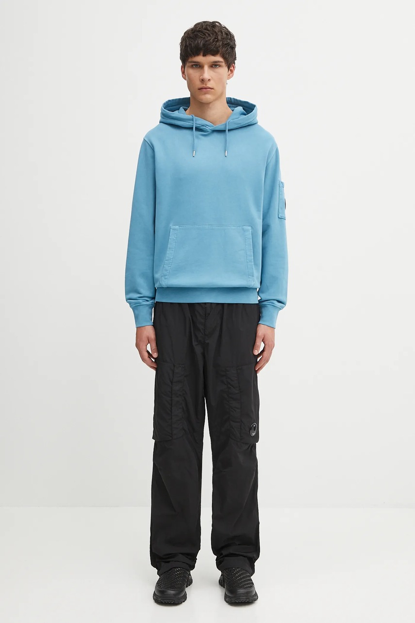 C.P. Company bluza bawełniana męska kolor niebieski z kapturem gładka 19CMSS719A006372R