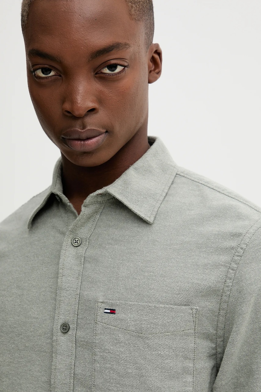 Tommy Jeans koszula bawełniana męska kolor zielony regular z kołnierzykiem klasycznym DM0DM22023