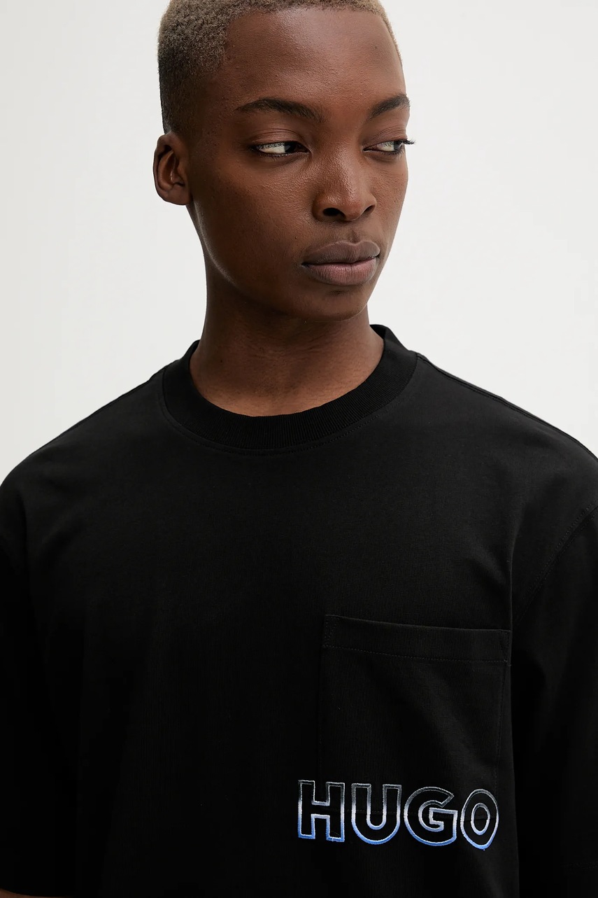 Hugo Blue t-shirt bawełniany męski kolor czarny z aplikacją 50549120