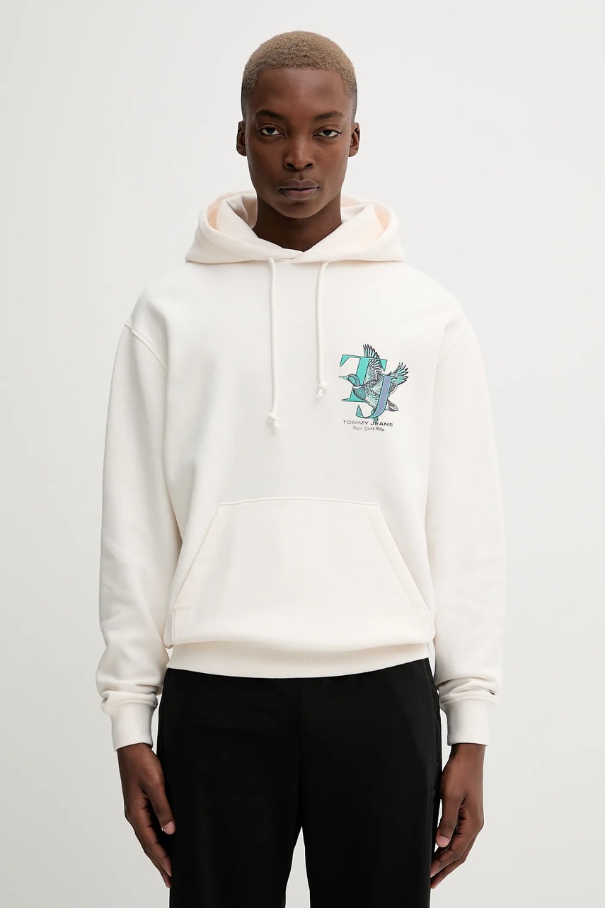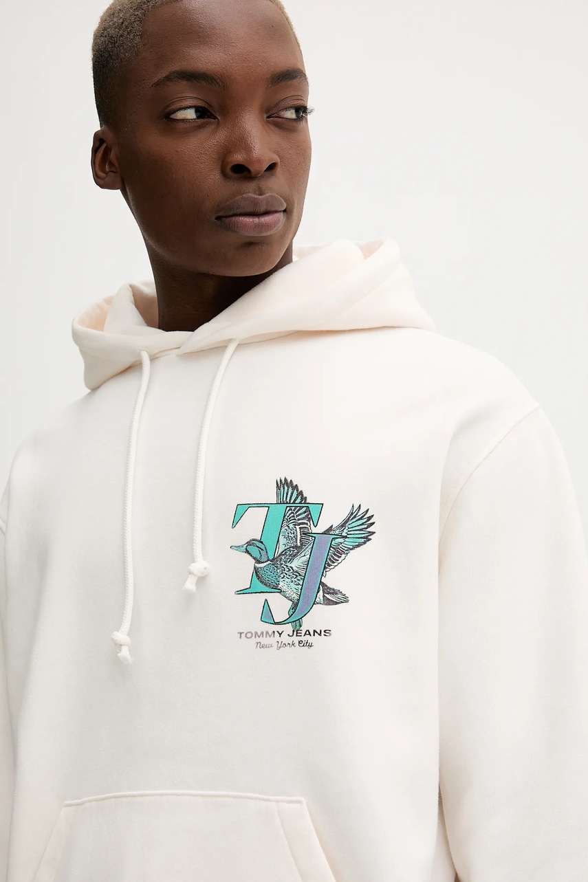 Tommy Jeans bluza męska kolor beżowy z kapturem z nadrukiem DM0DM22088