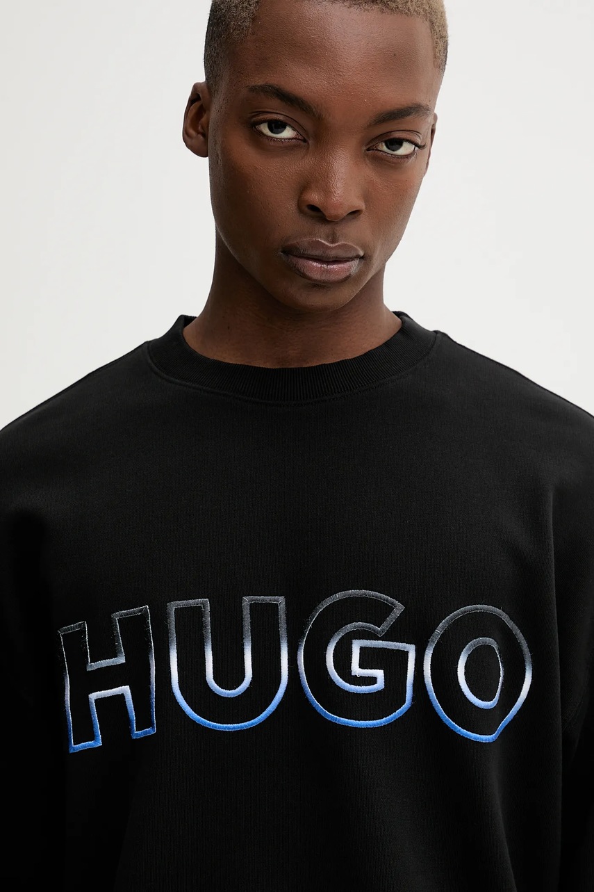 Hugo Blue bluza bawełniana męska kolor czarny z aplikacją 50549148