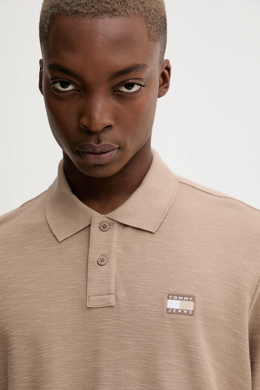 Tommy Jeans polo bawełniane męski kolor beżowy z aplikacją DM0DM22063