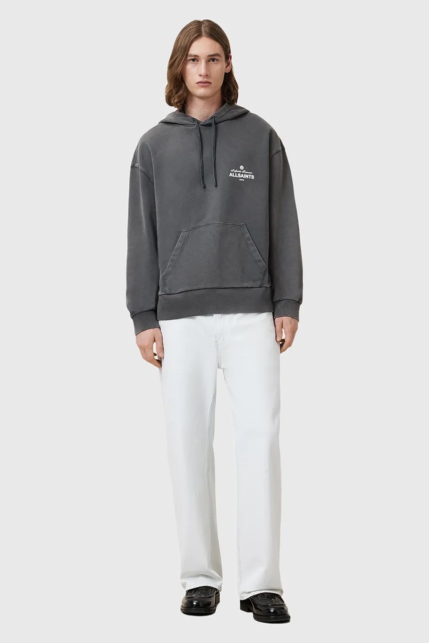 AllSaints bluza bawełniana SOLEIL męska kolor szary z kapturem z nadrukiem M016NC