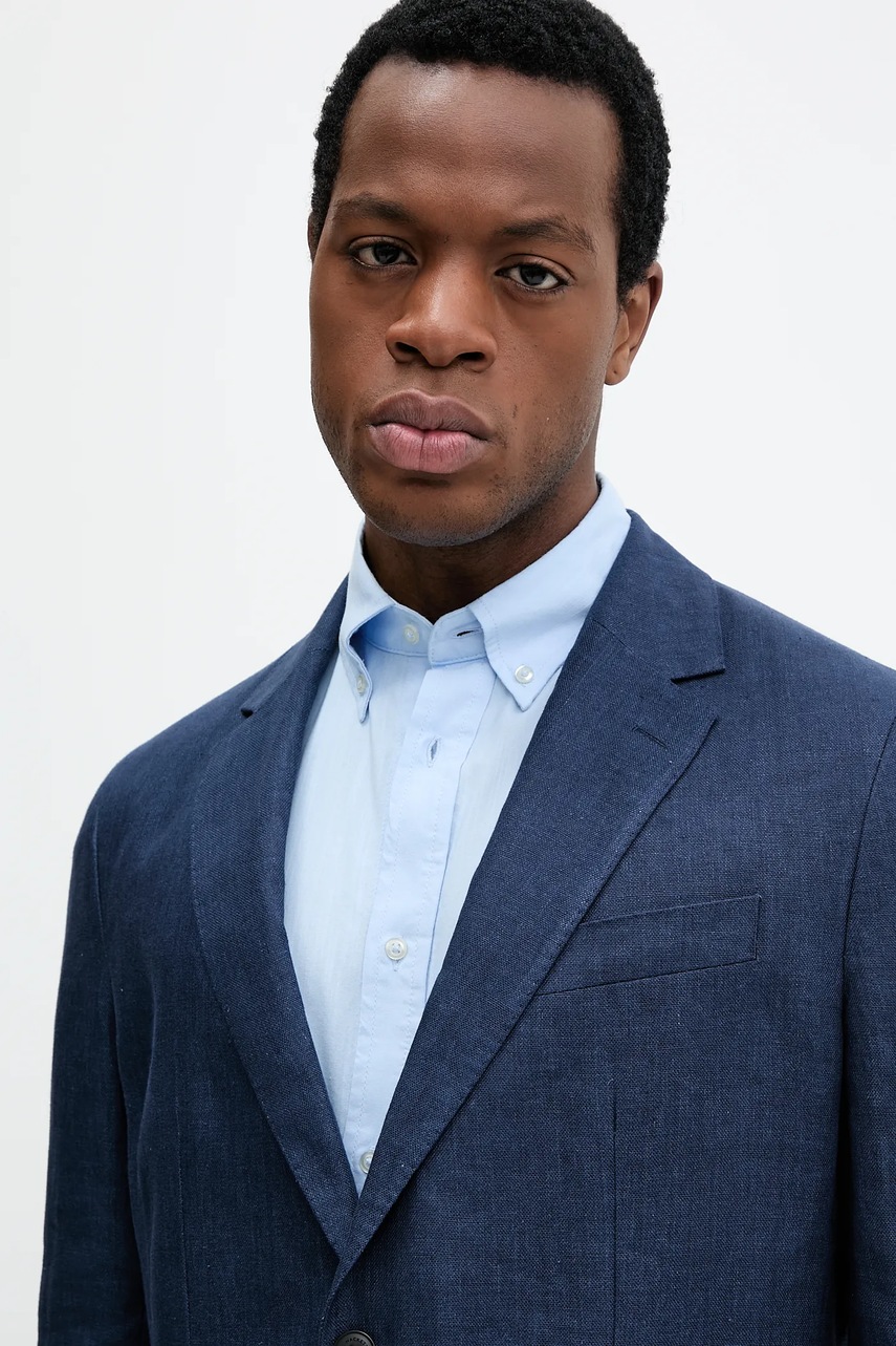 Hackett London marynarka lniana męska kolor granatowy HM443515R