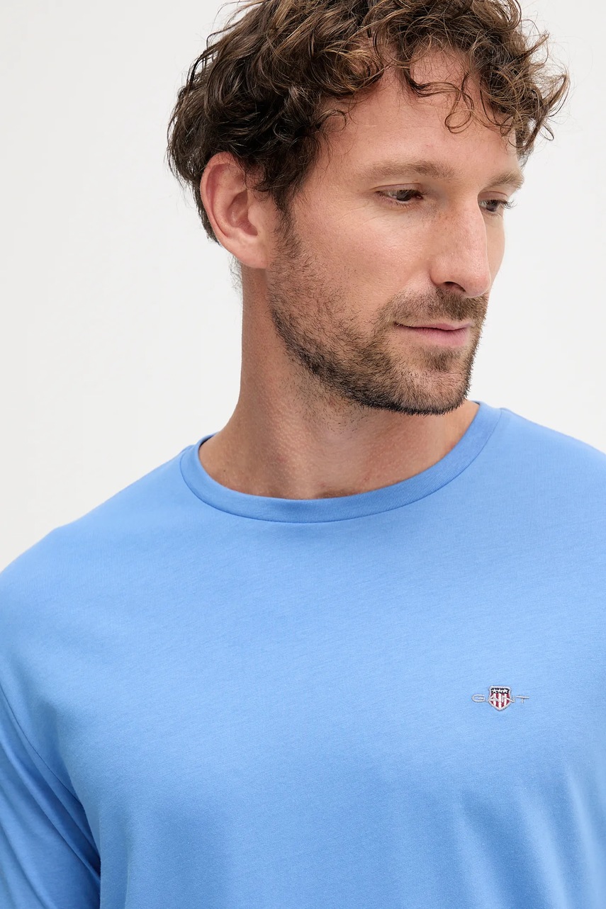 Gant t-shirt bawełniany męski kolor niebieski gładki