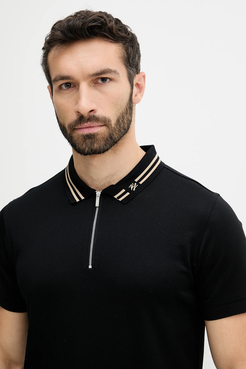 Karl Lagerfeld polo bawełniane męski kolor czarny gładki 553201.745004