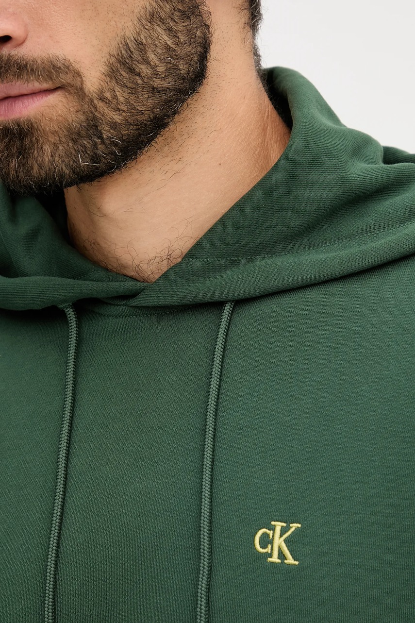 Calvin Klein Jeans bluza bawełniana męska kolor zielony z kapturem gładka LV04RC297G