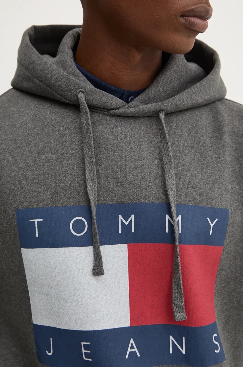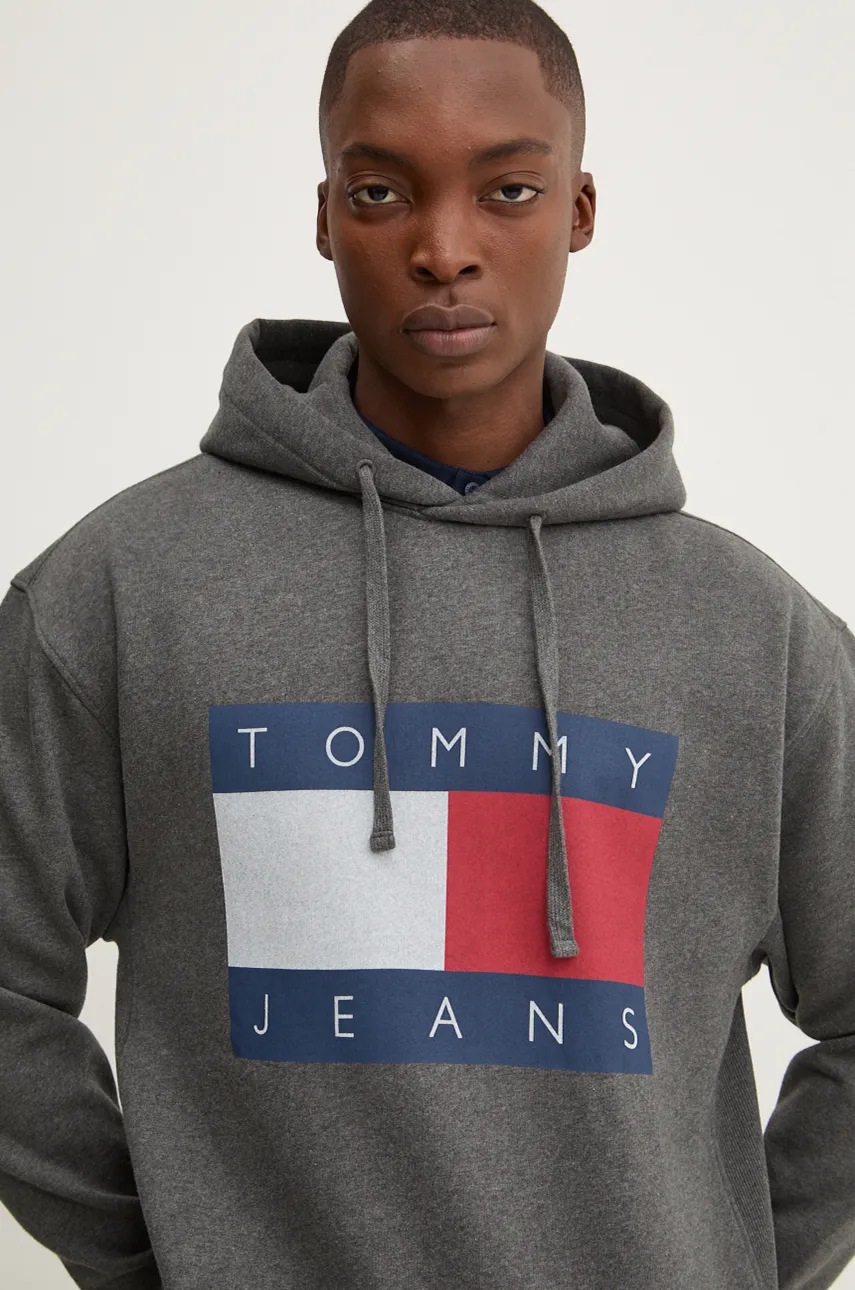 Tommy Jeans bluza męska kolor szary z kapturem z nadrukiem DM0DM20591