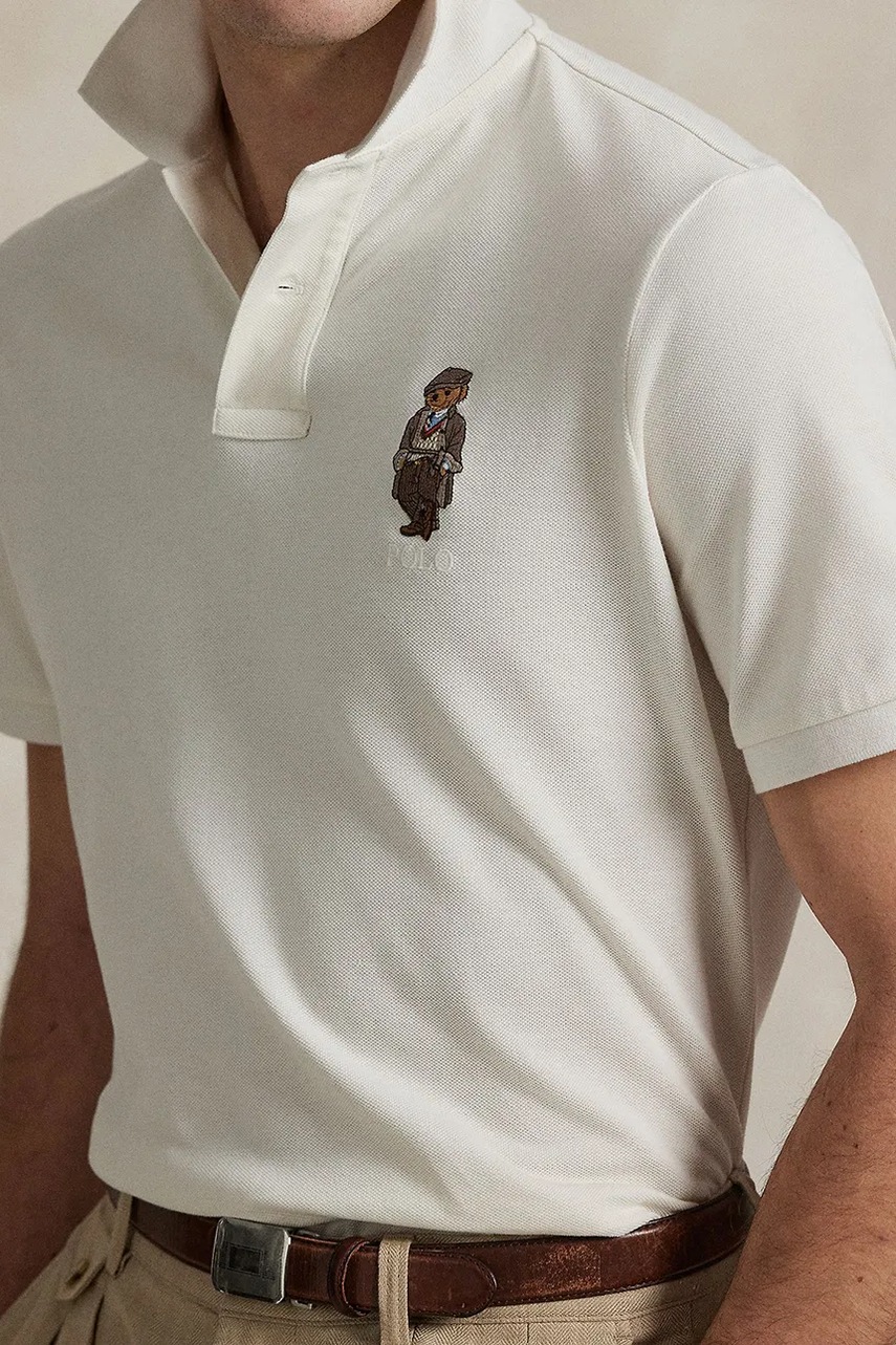 Polo Ralph Lauren polo bawełniane męski kolor biały z aplikacją 710P00082