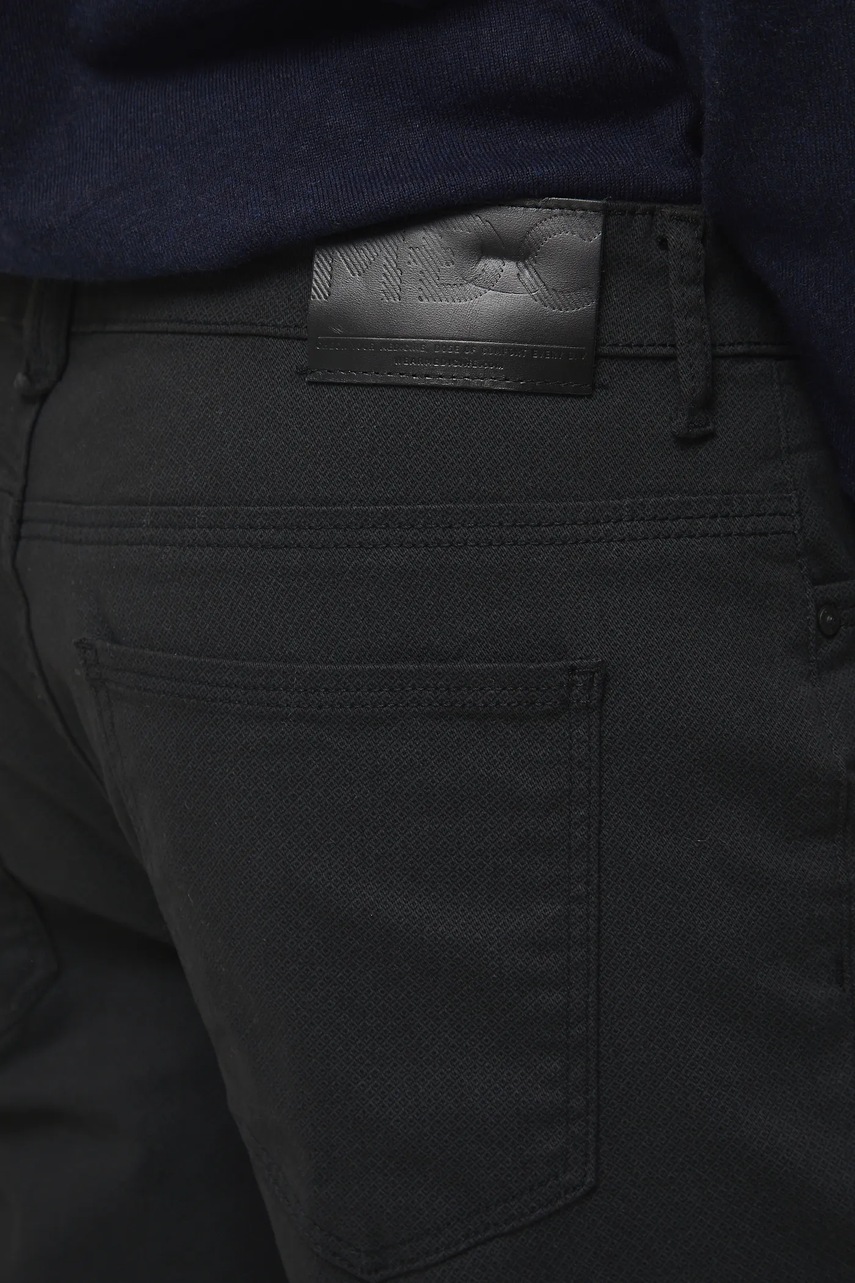 - Model z regularną talią i zapięciem na guzik i suwak.