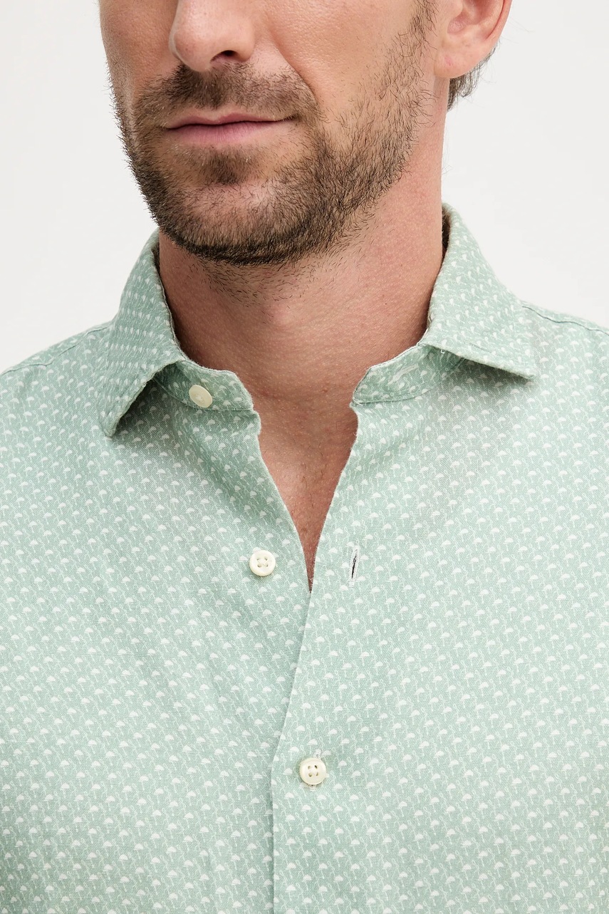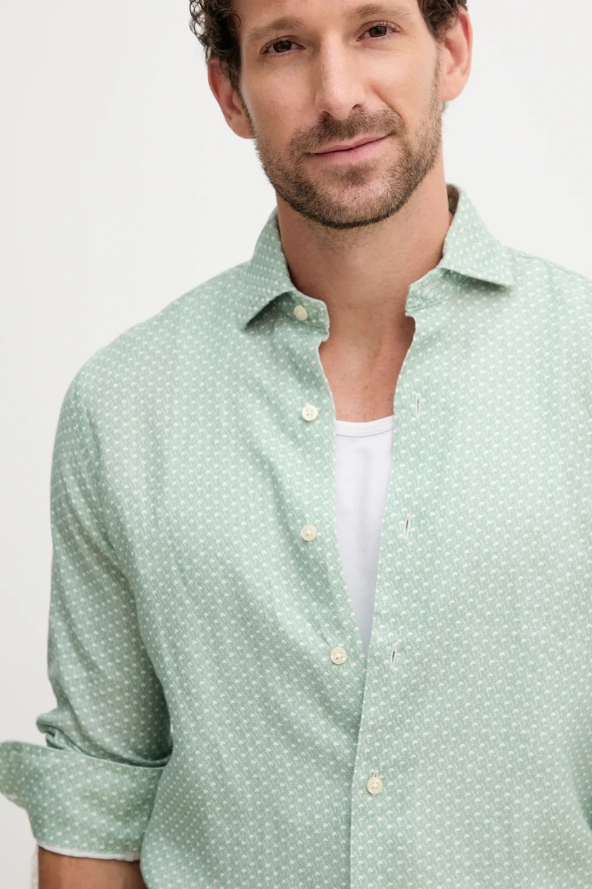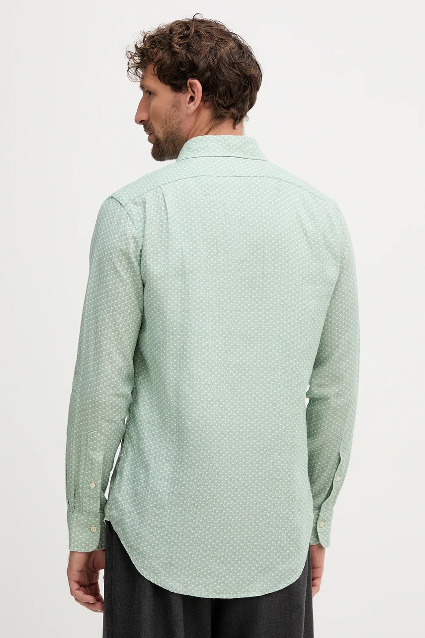 Polo Ralph Lauren koszula lniana męska kolor zielony regular z kołnierzykiem włoskim 710974546