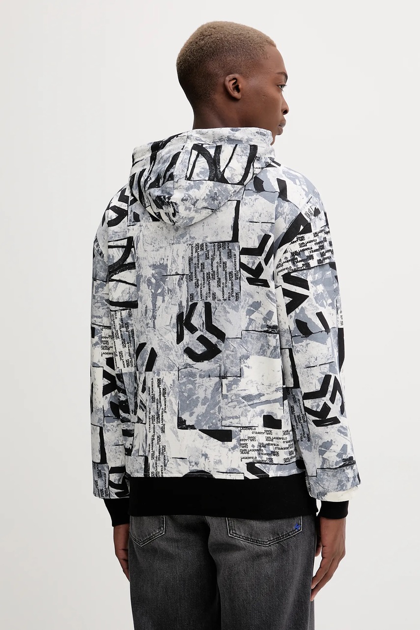 Karl Lagerfeld Jeans bluza bawełniana męska kolor biały z kapturem wzorzysta A4M20023