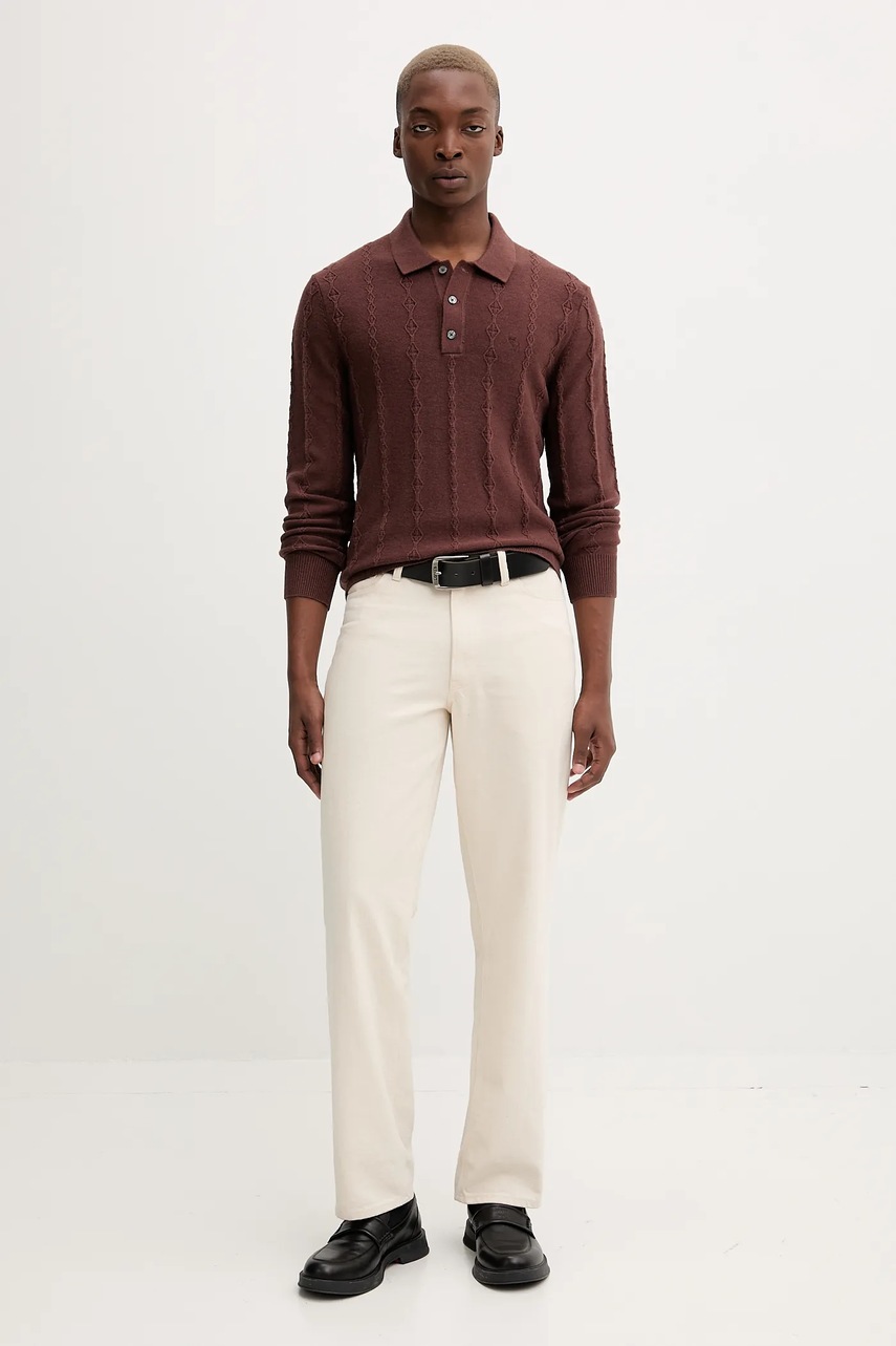 Abercrombie & Fitch sweter z dodatkiem wełny męski kolor brązowy lekki KI120-5142-400