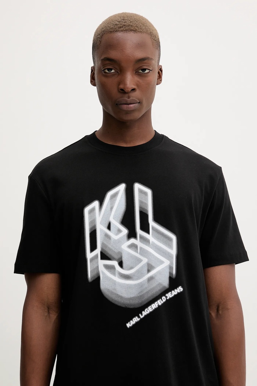Karl Lagerfeld Jeans t-shirt bawełniany męski kolor czarny z nadrukiem A4M17023