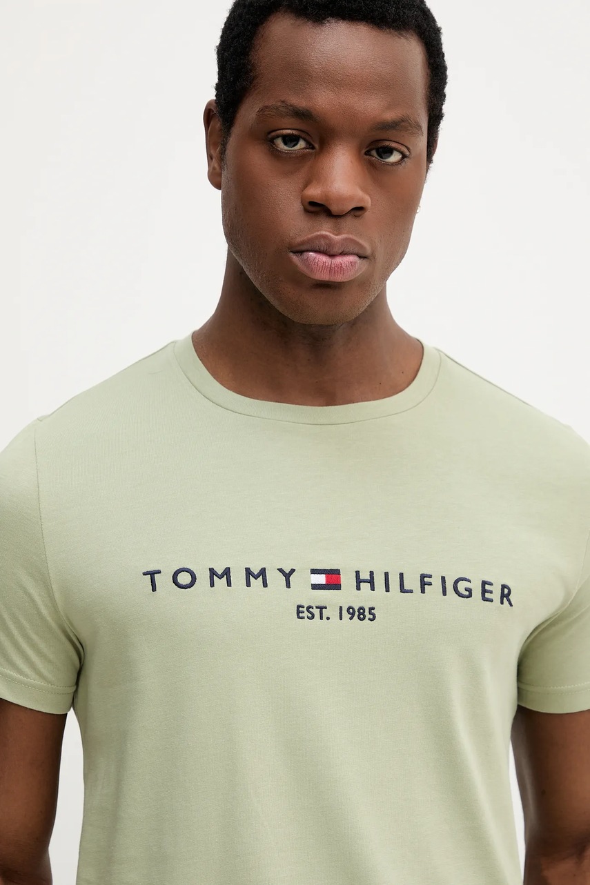 Tommy Hilfiger t-shirt bawełniany męski kolor zielony z aplikacją MW0MW11797