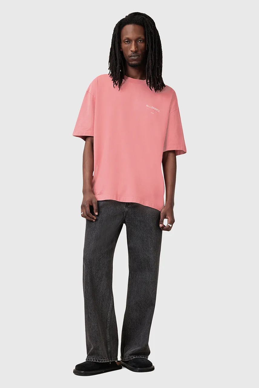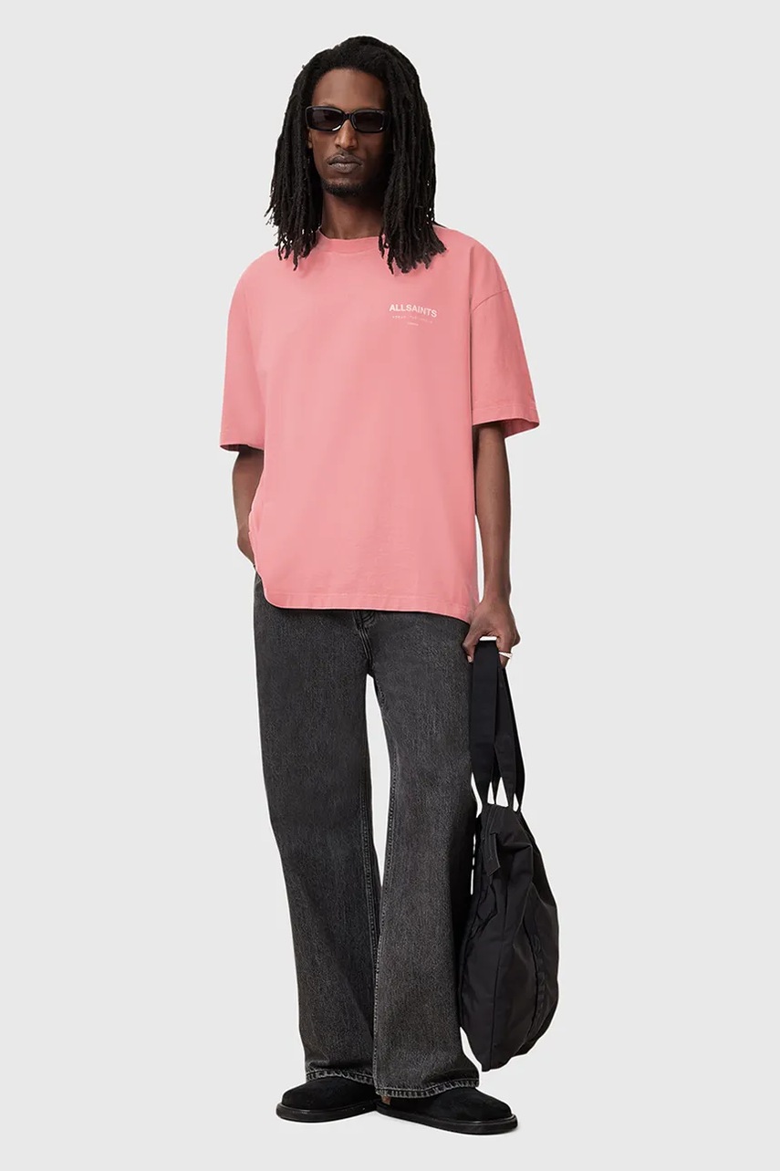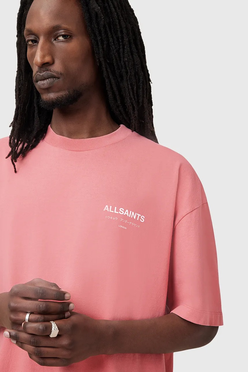 AllSaints t-shirt bawełniany UNDERGROUND męski kolor różowy z nadrukiem M071PB