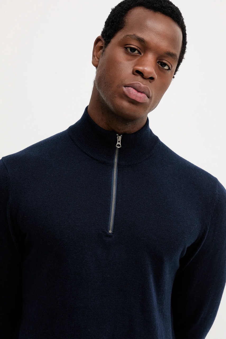 Pepe Jeans sweter z domieszką wełny męski kolor granatowy lekki z półgolfem PM7000012