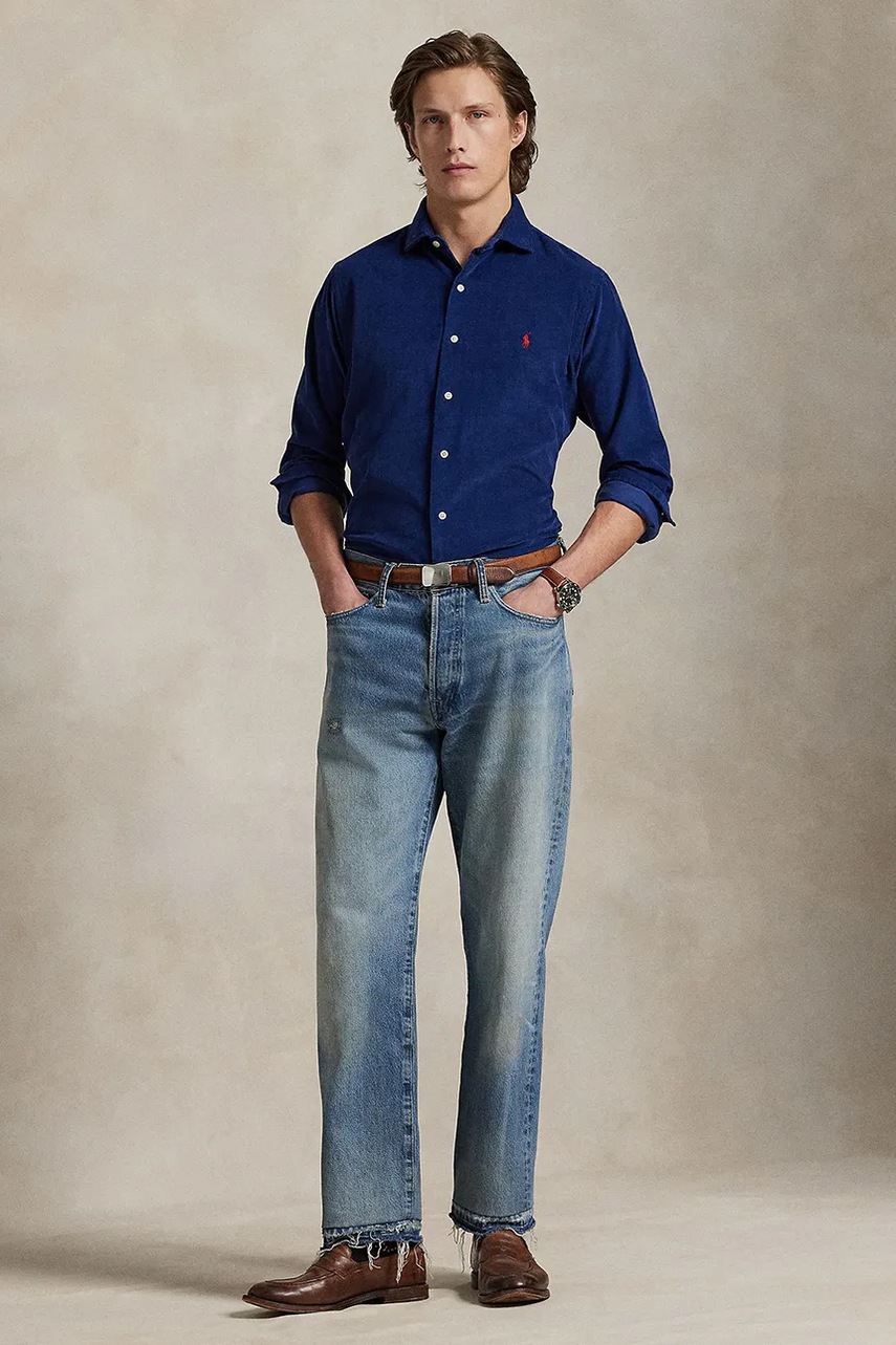 Polo Ralph Lauren koszula bawełniana męska kolor granatowy regular z kołnierzykiem włoskim 710P00518
