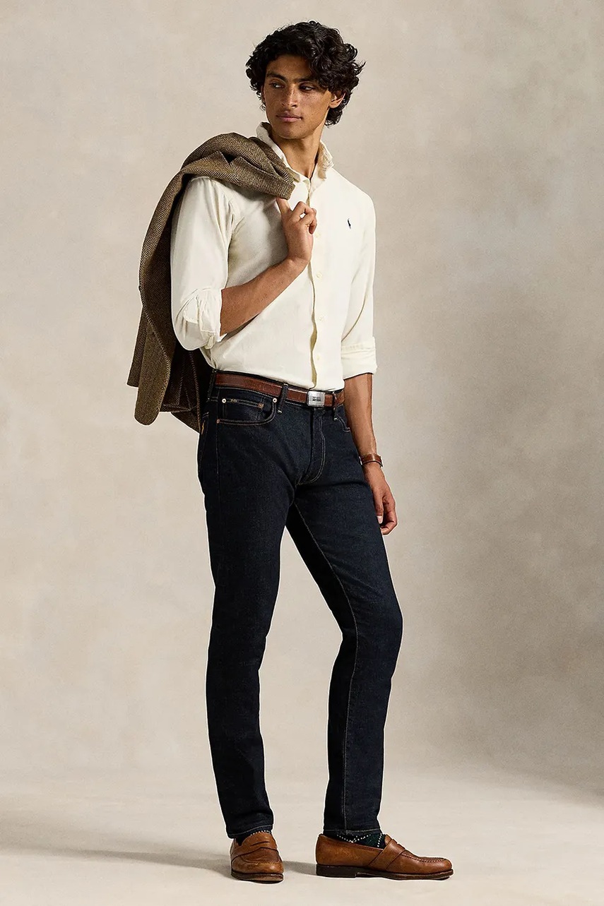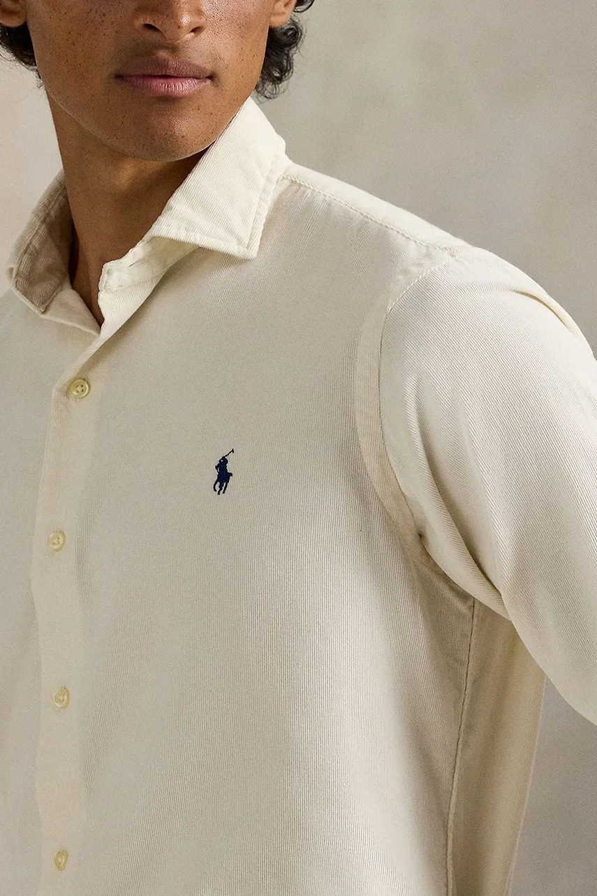 Polo Ralph Lauren koszula bawełniana męska kolor beżowy regular z kołnierzykiem włoskim 710P00518