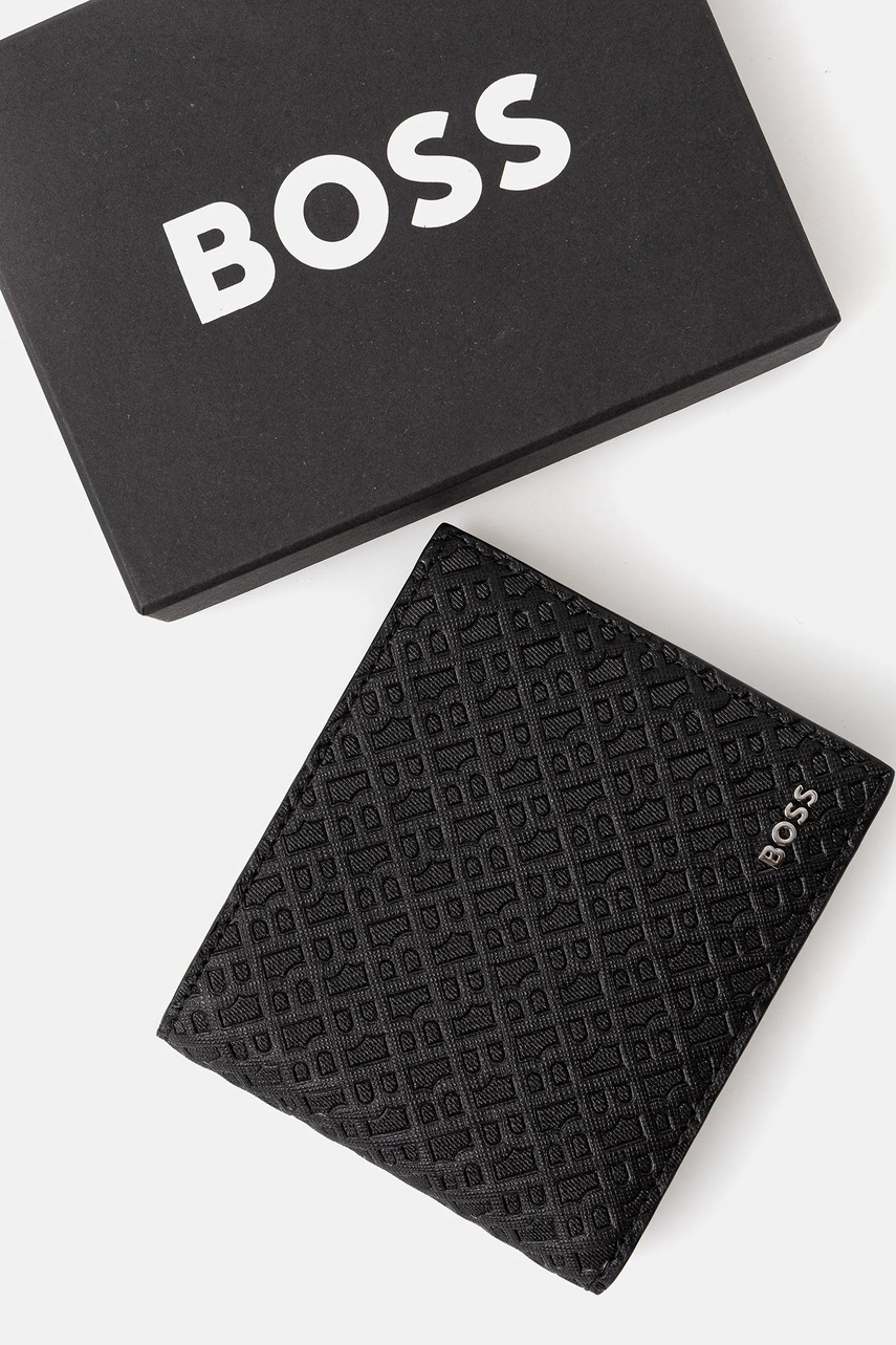 BOSS portfel skórzany męski kolor czarny 50548816