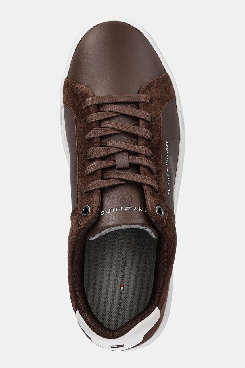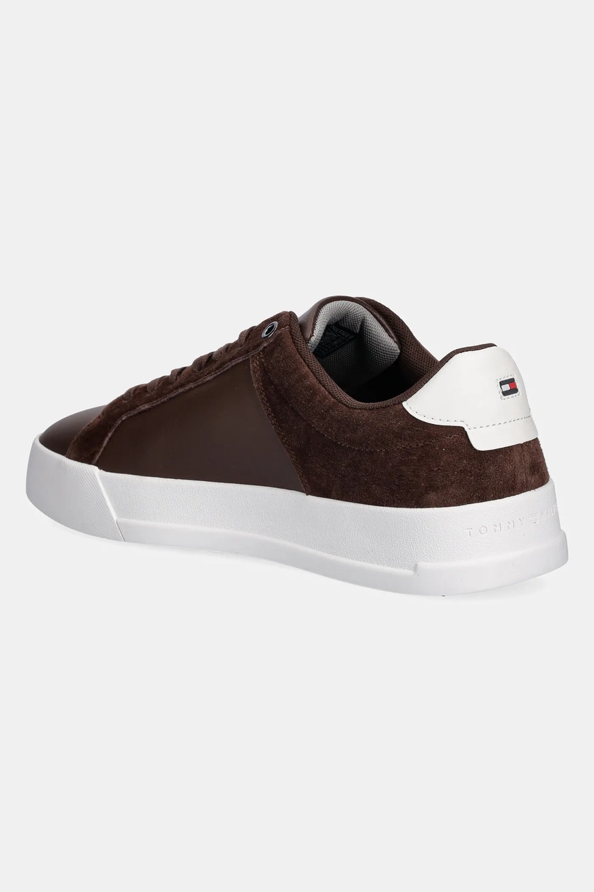 Tommy Hilfiger sneakersy skórzane TH COURT MIX NUBUCK męskie kolor brązowy FM0FM05634