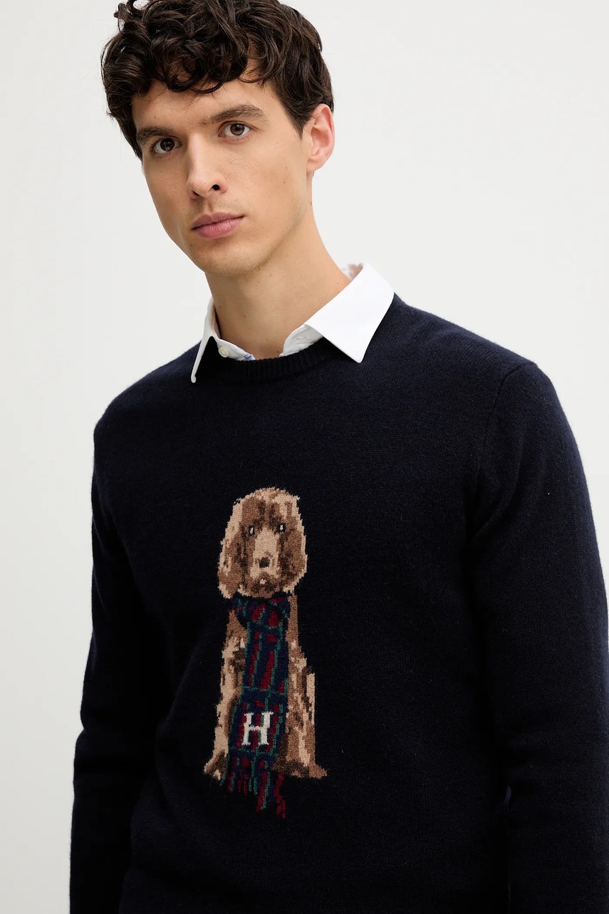 Hackett London sweter wełniany męski kolor granatowy lekki HM7000051