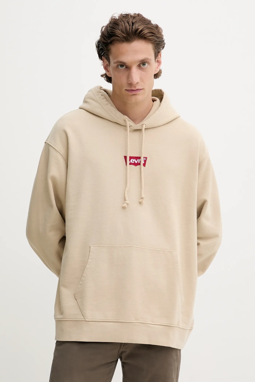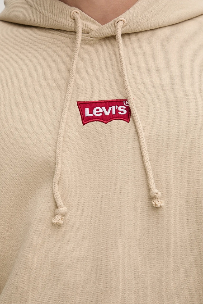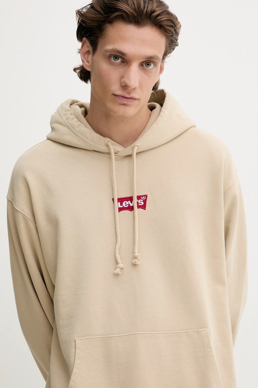 Levi's bluza bawełniana męska kolor beżowy z kapturem gładka 38479