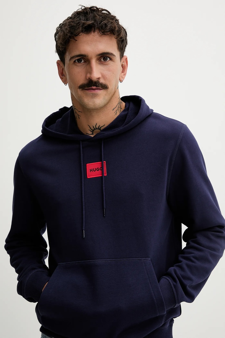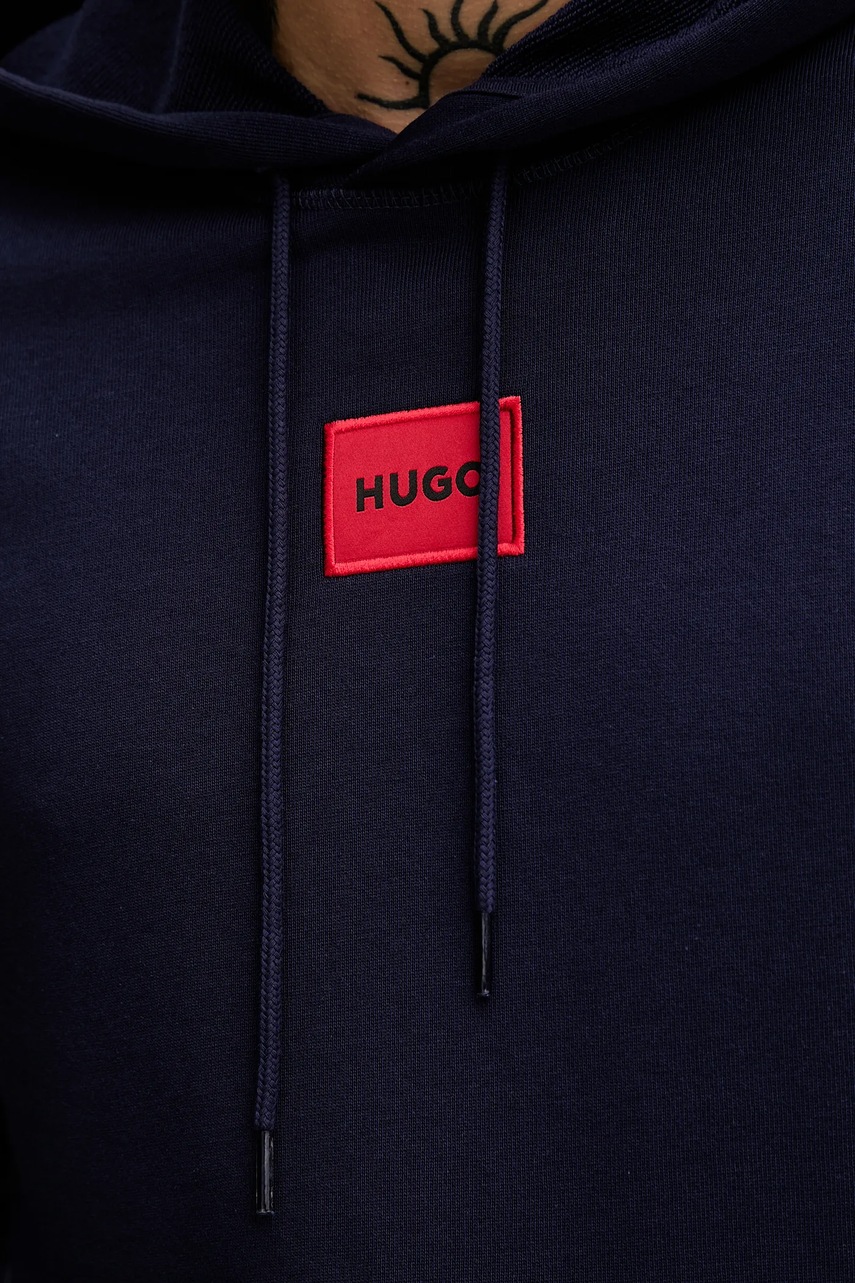 HUGO bluza bawełniana męska kolor niebieski z kapturem z aplikacją 50458700