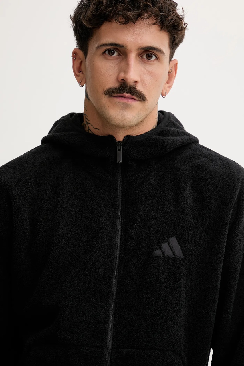 adidas bluza polarowa Future Icons męska kolor czarny z kapturem gładka JM6053