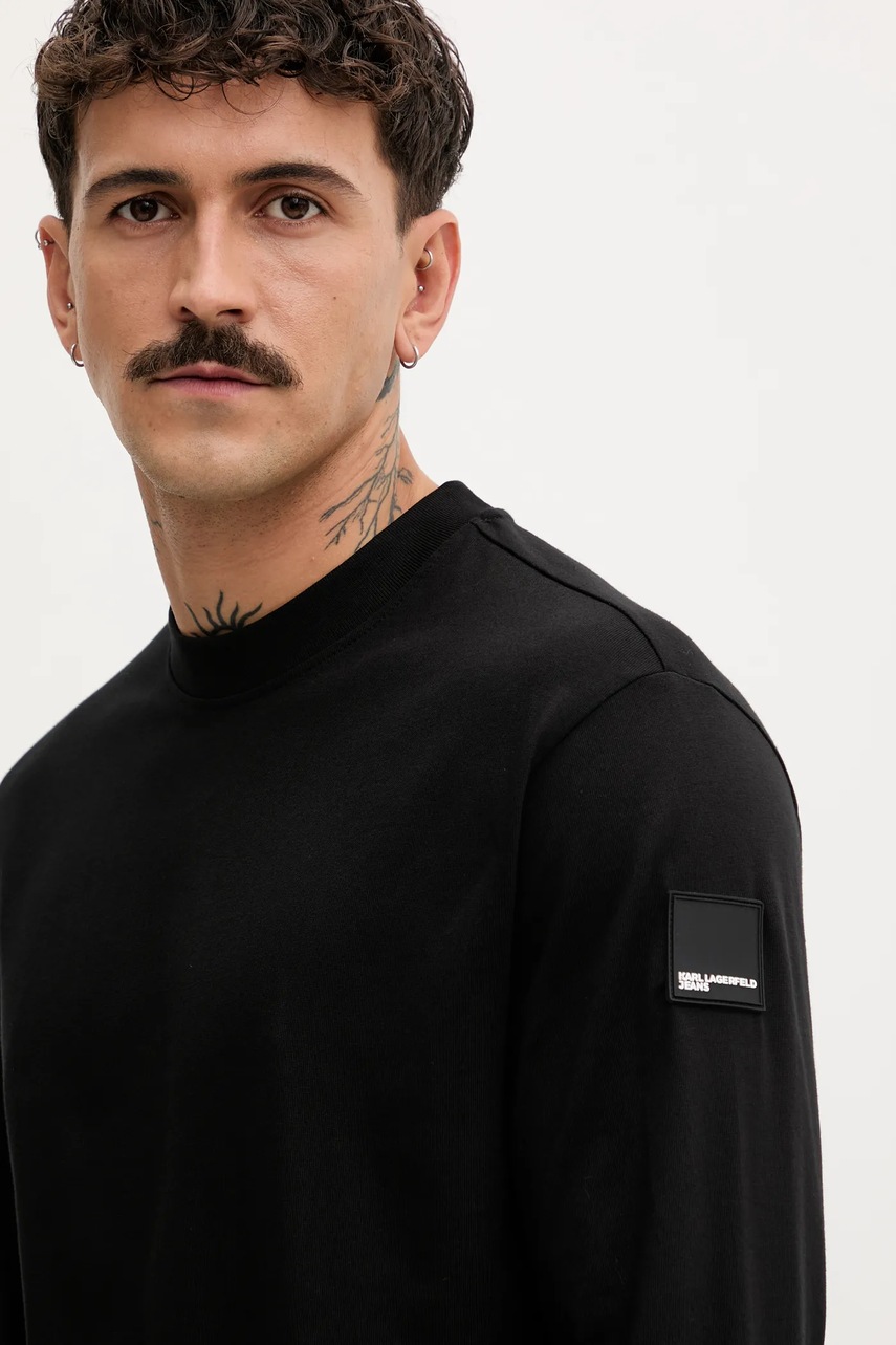 Karl Lagerfeld Jeans longsleeve bawełniany kolor czarny gładki A4M17085