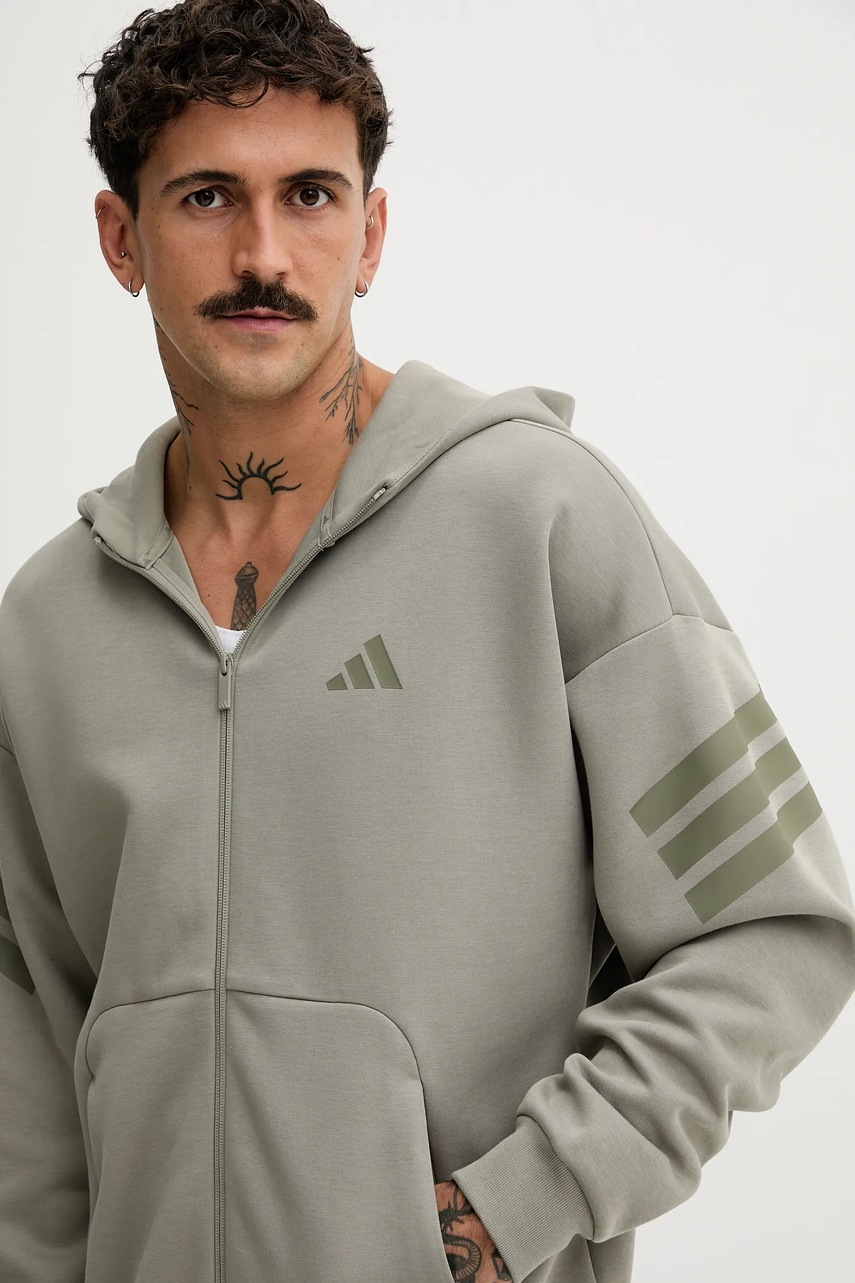 adidas bluza Fi 3S męska kolor zielony z kapturem z nadrukiem JW7112