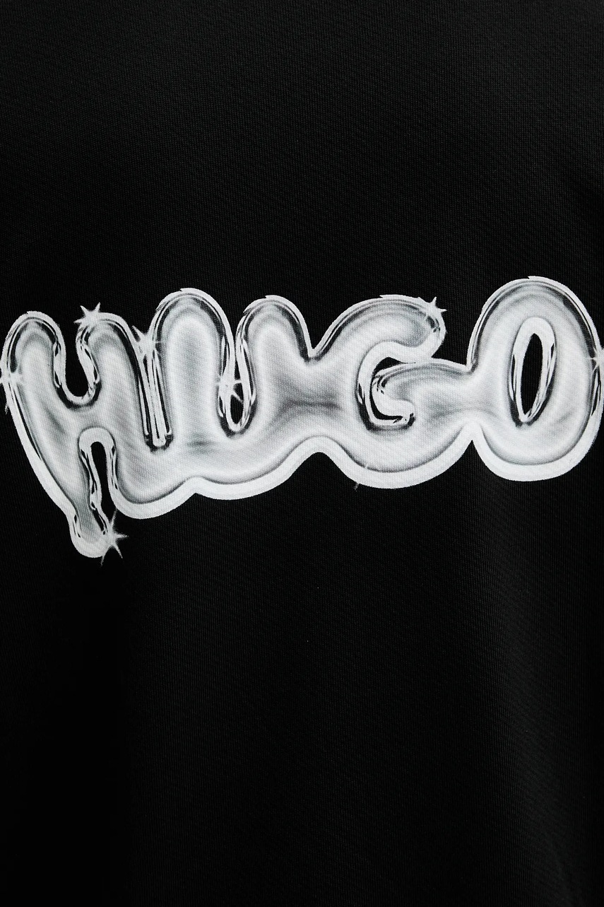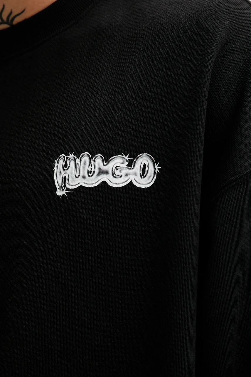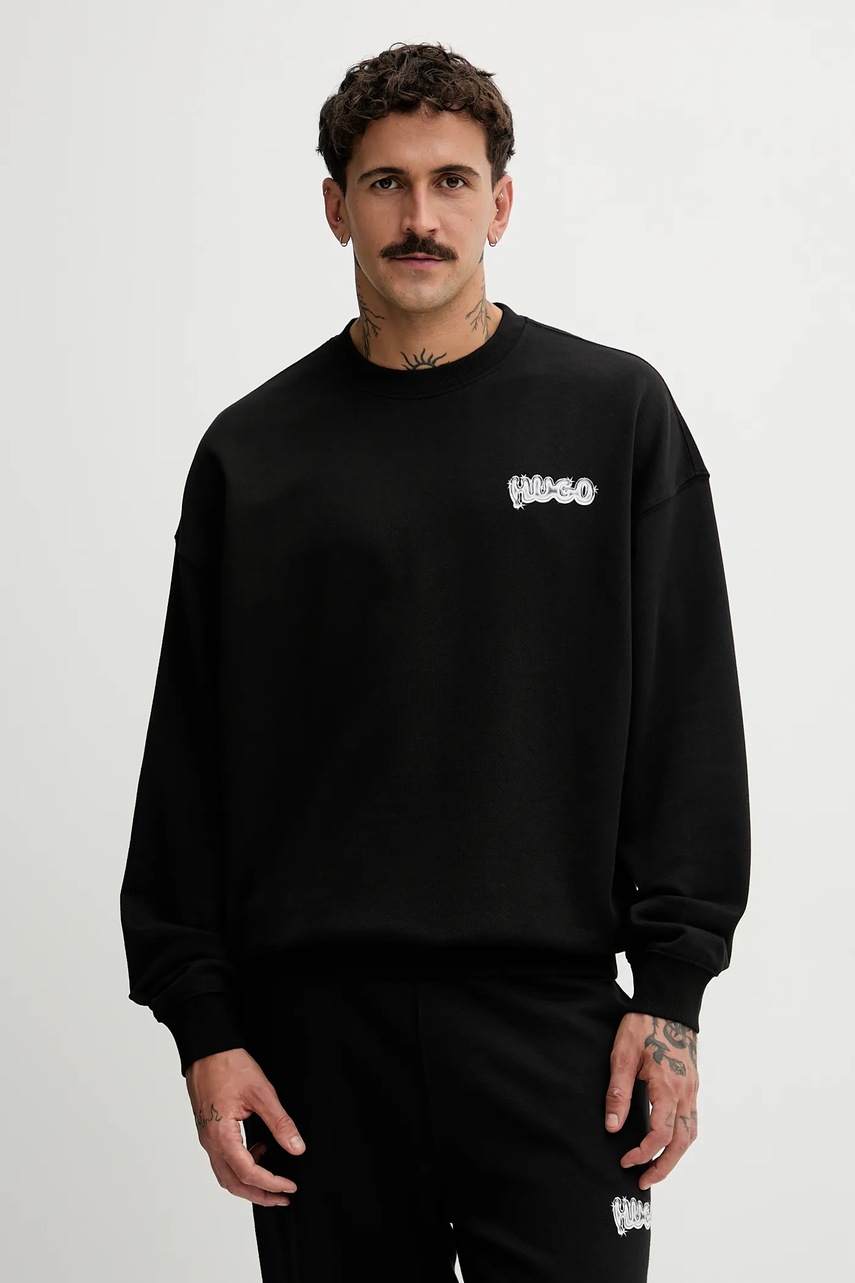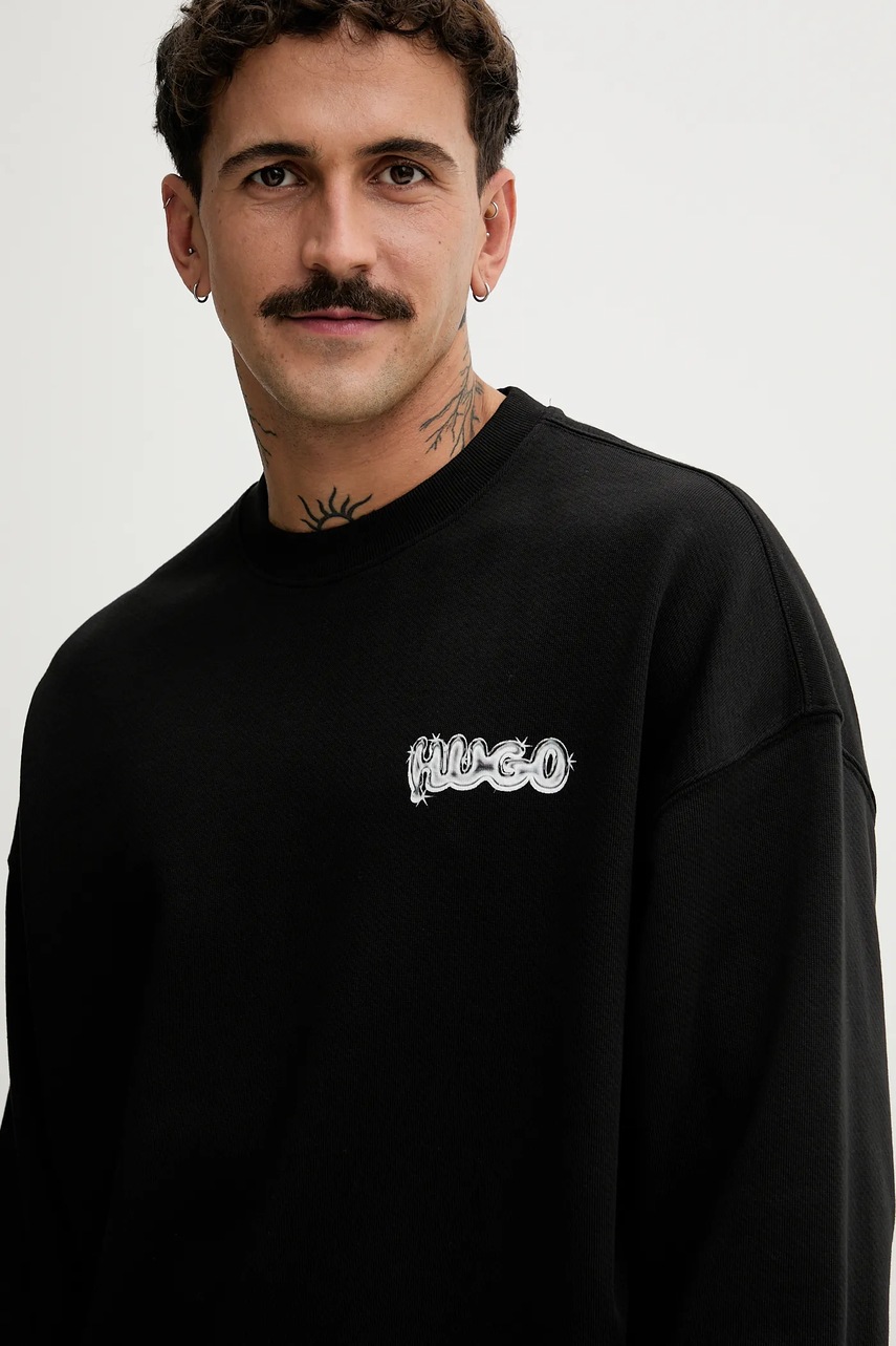 Hugo Blue bluza bawełniana męska kolor czarny z kapturem z nadrukiem 50549778