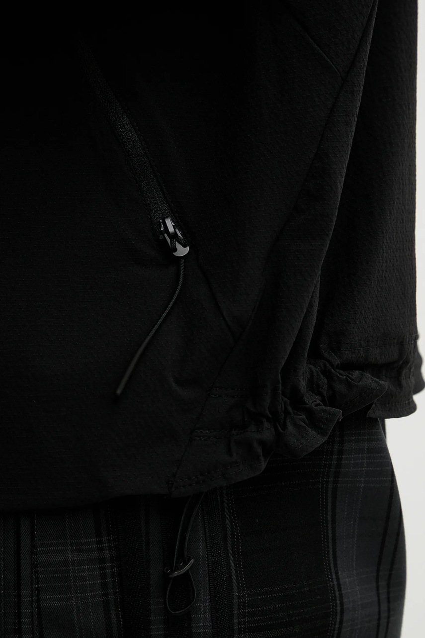 - Dolna krawędź wykończona troczkami ze stoperami, które dzięki możliwości regulacji obwodu dołu, zwiększają izolację od zimna.